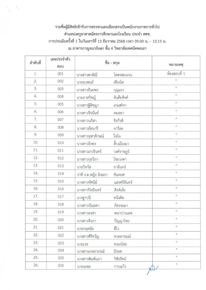 กิจกรรม : ประกาศ เรื่อง เปลี่ยนแปลงสถานที่สอบการสรรหาและเลือกสรรเป็นพนักงานราชการทั่วไป ตำแหน่งครูอาสาสมัครการศึกาานอกโรงเรียน ประจำ ศศช.