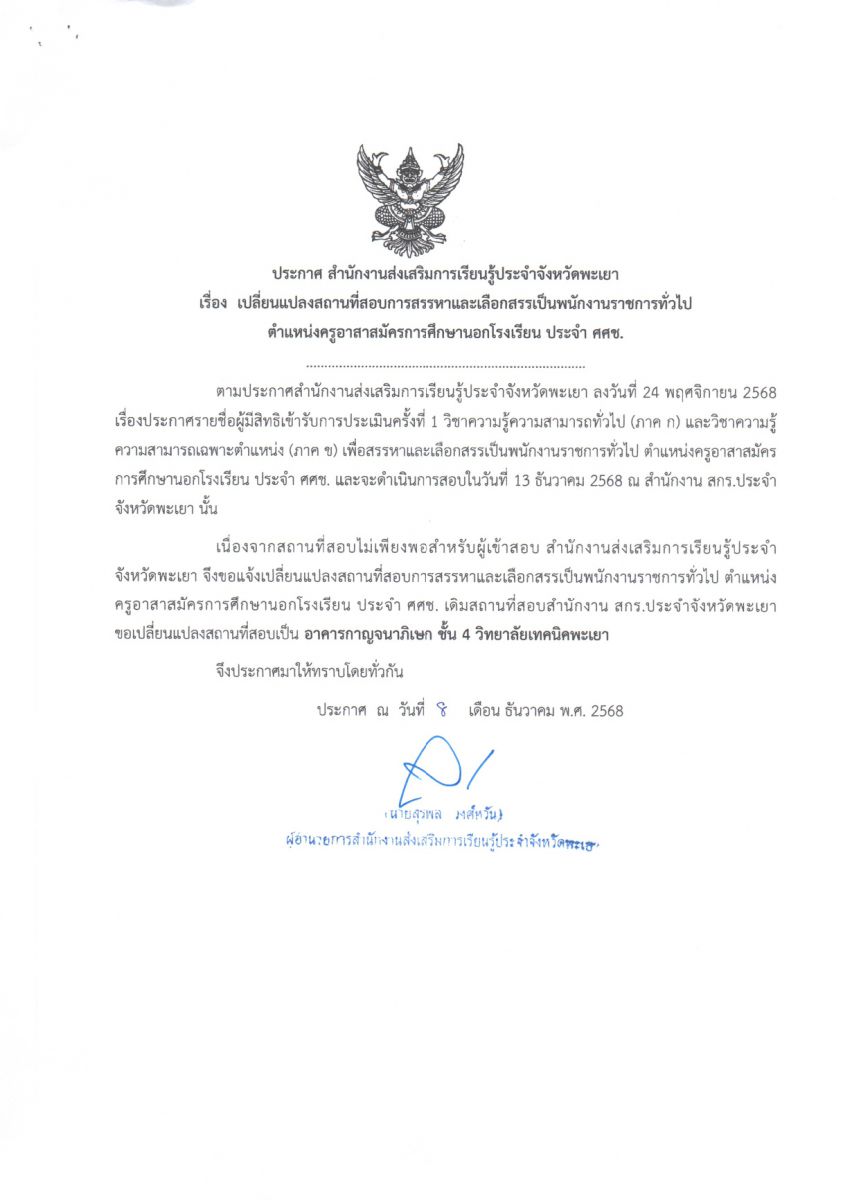 ประกาศ เรื่อง เปลี่ยนแปลงสถานที่สอบการสรรหาและเลือกสรรเป็นพนักงานราชการทั่วไป ตำ...