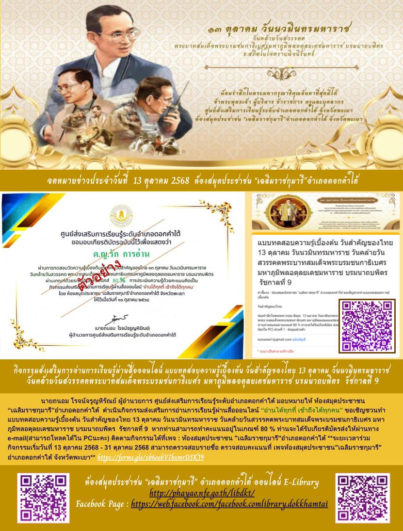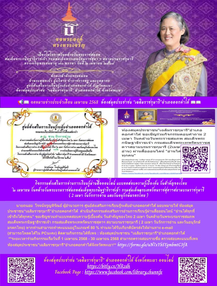สมัครสมาชิกห้องสมุดประชาชน เฉลิมราชกุมารี อำเภอดอกคำใต้