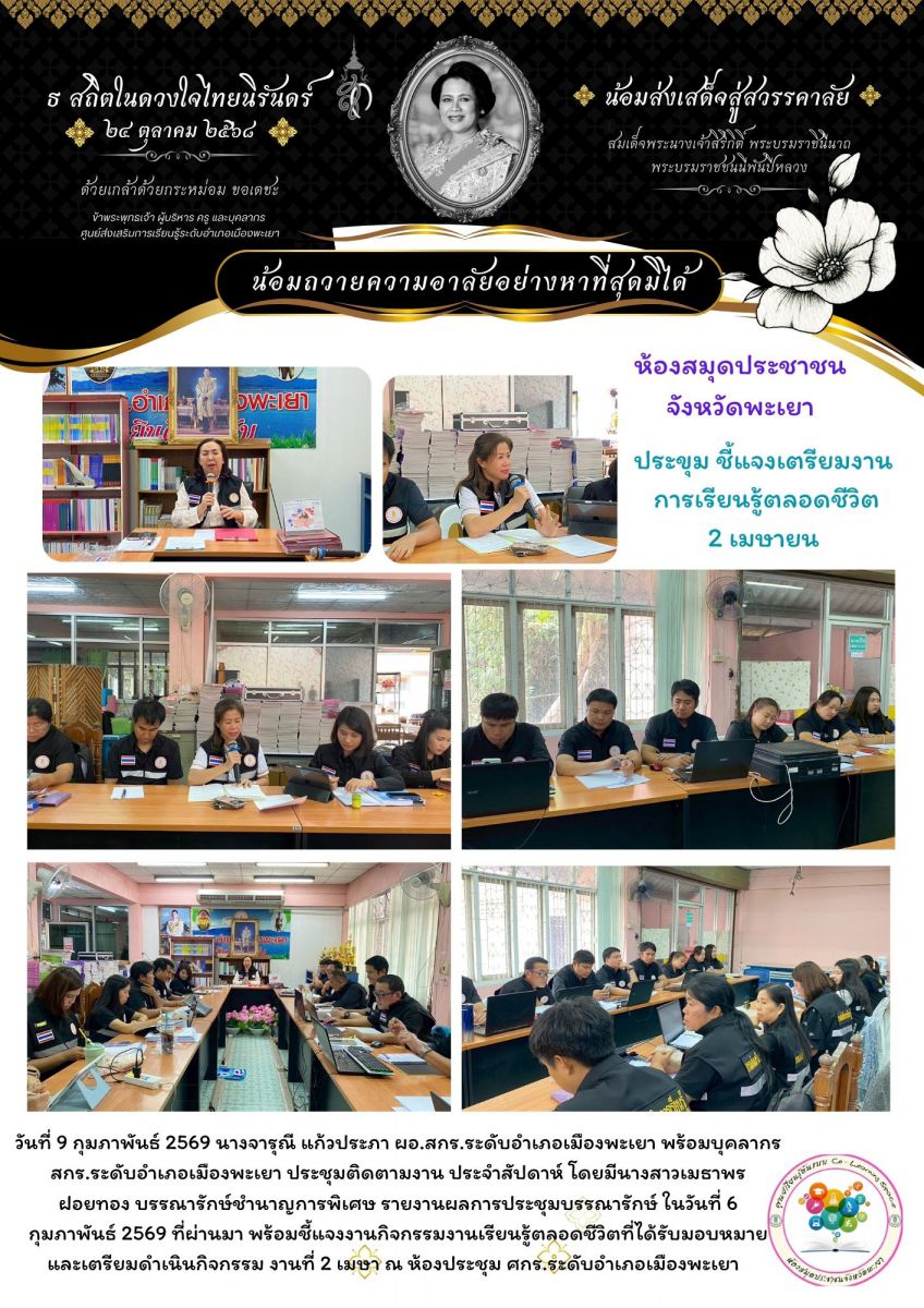 วันที่ 9 กุมภาพันธ์ 2569 นางจารุณี แก้วประภา ผอ.สกร.ระดับอำเภอเมืองพะเยา พร้อมบุคลากร สกร.ระดับอำเภอเมืองพะเยา ประชุมติดตามงาน ประจำสัปดาห์ โดยมีนางสา...