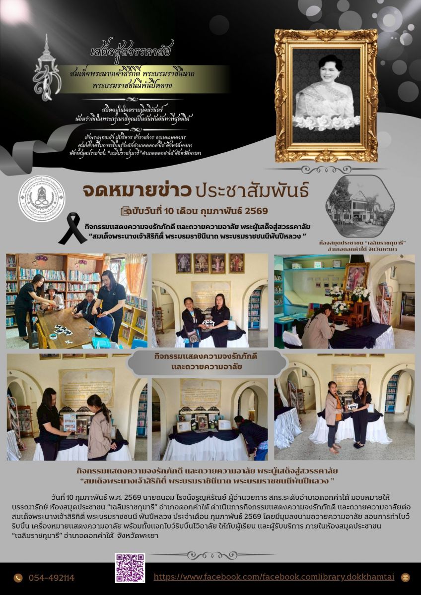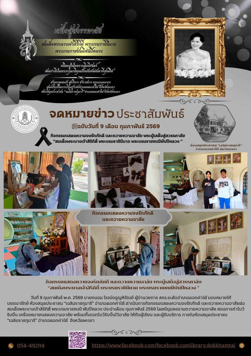 วันที่ 11 กุมภาพันธ์ 2569 นางสาวเมธาพร ฝอยทอง บรรณารักษ์ชำนาญการพิเศษ ประชาสัมพันธ์ การแข่งขันตอบคำถาม พระราชนิพนธ์ในสมเด็จพระกนิษฐาธิราชเจ้า กรมสมเด...
