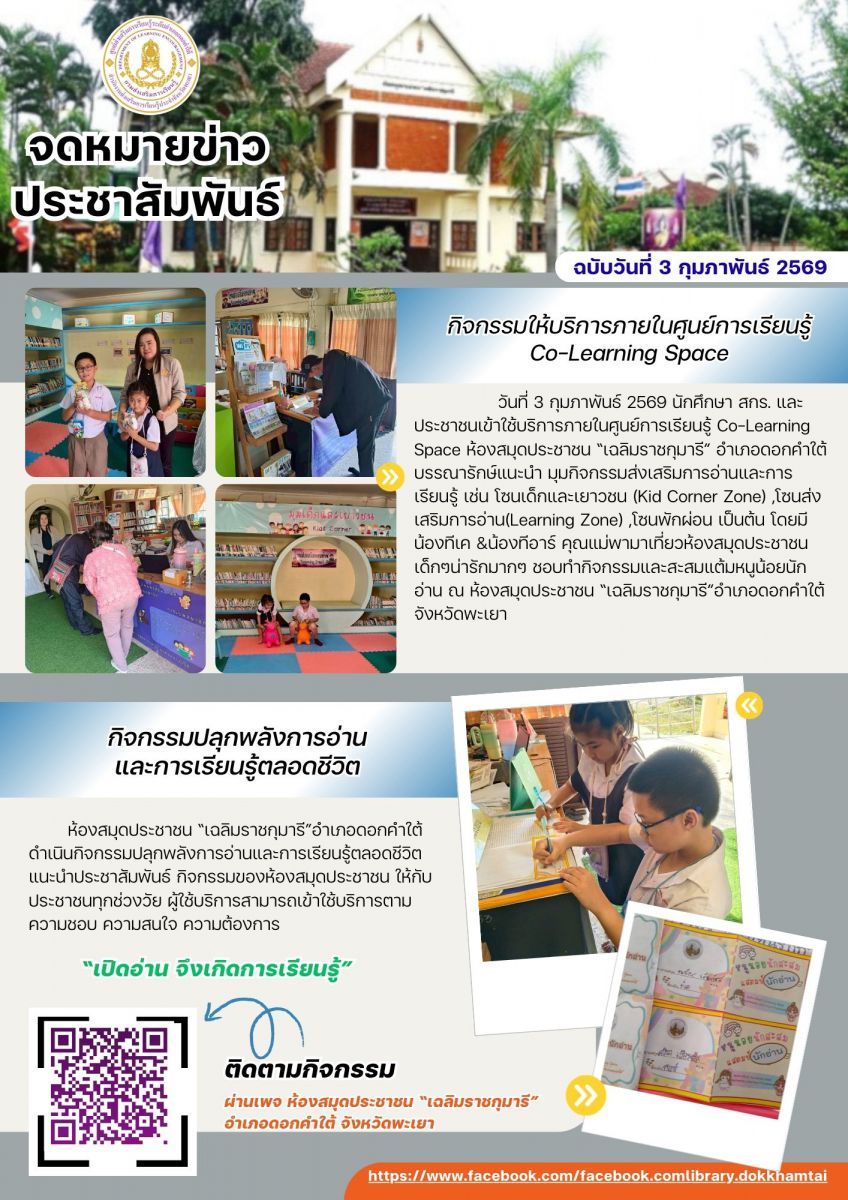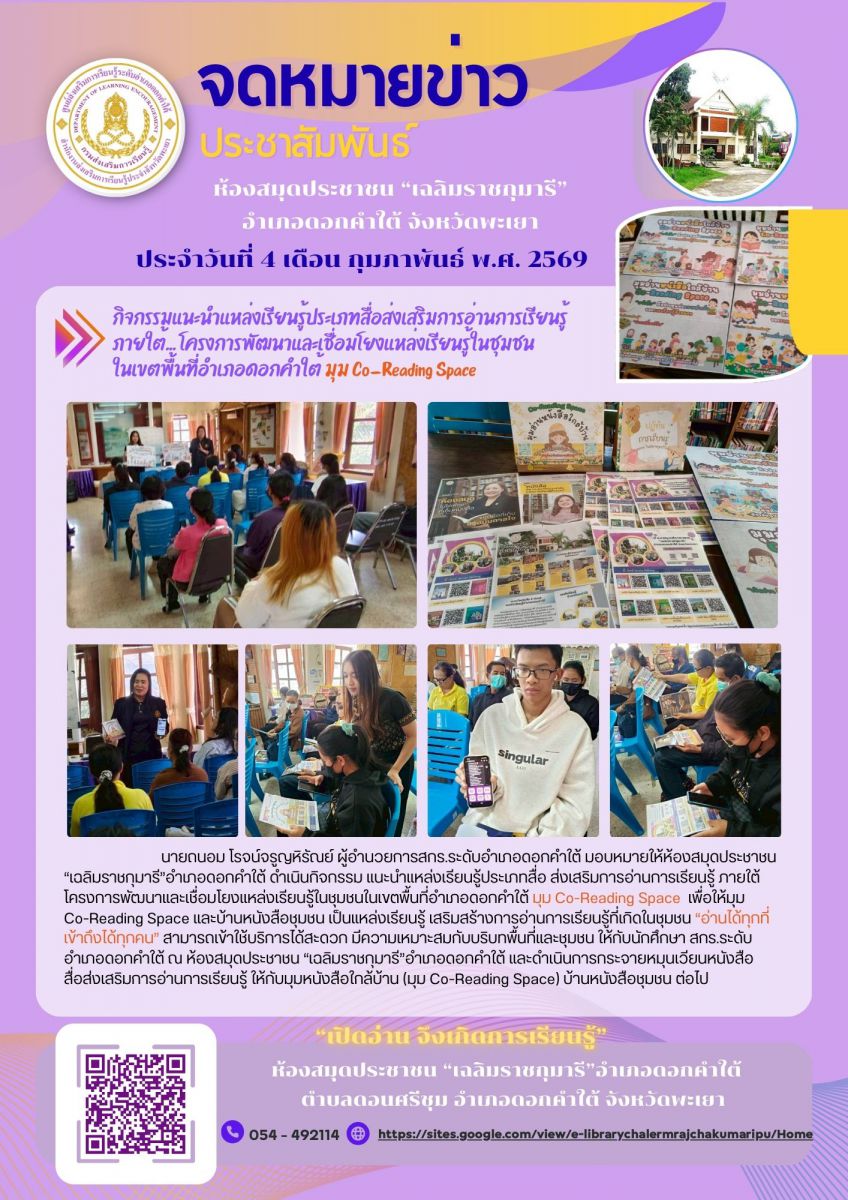 กิจกรรม : ห้องสมุดประชาชน "เฉลิมราชกุมารี" อำเภอดอกคำใต้