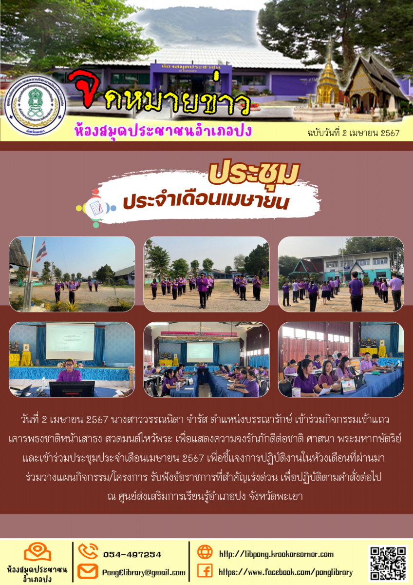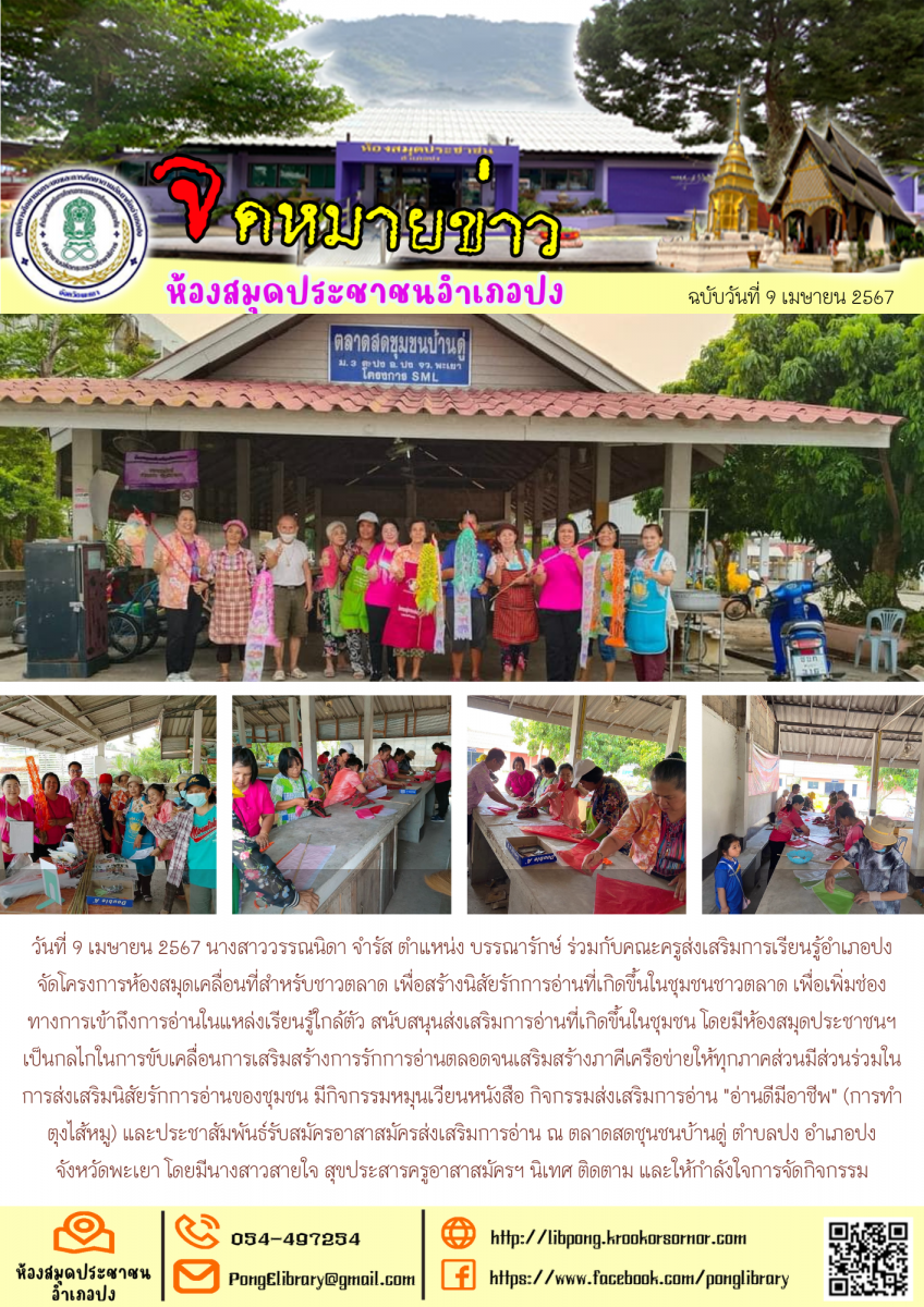 วันที่ 11 เมษายน 2567 กิจกรรมส่งเสริมการอ่านด้วยการเเรียนรู้ “ชื่อบ้านนามเมืองอำเภอเชียงม่วน” การตัดตุงไส้หมู กิจกรรมตานความฮู้ หนังสือดี น่าอ่าน ในง...