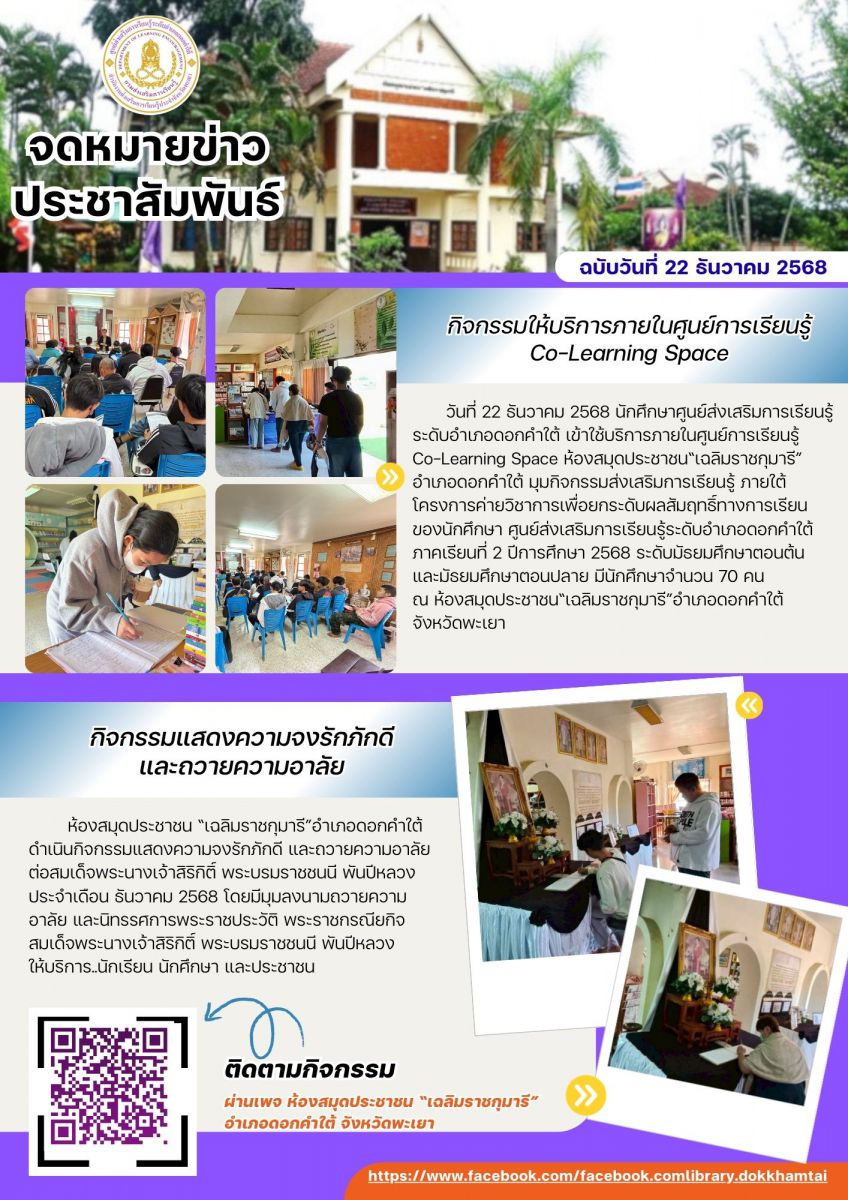 กิจกรรม : ห้องสมุดประชาชน "เฉลิมราชกุมารี" อำเภอดอกคำใต้