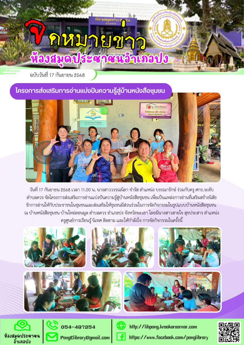 กิจกรรม : ห้องสมุดประชาชนอำเภอปง