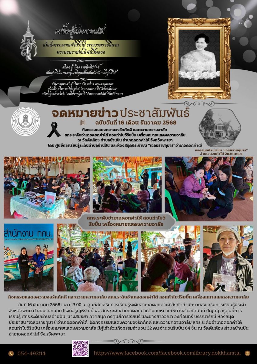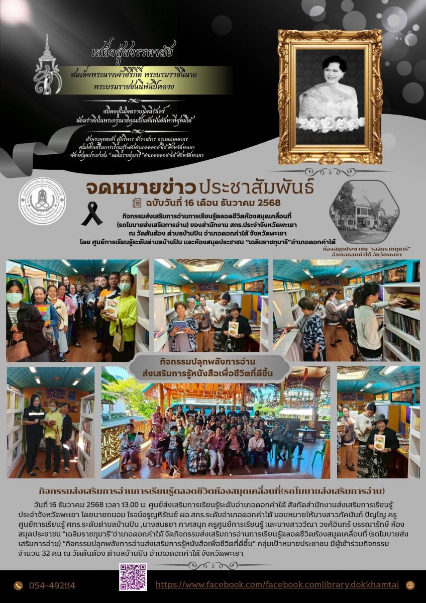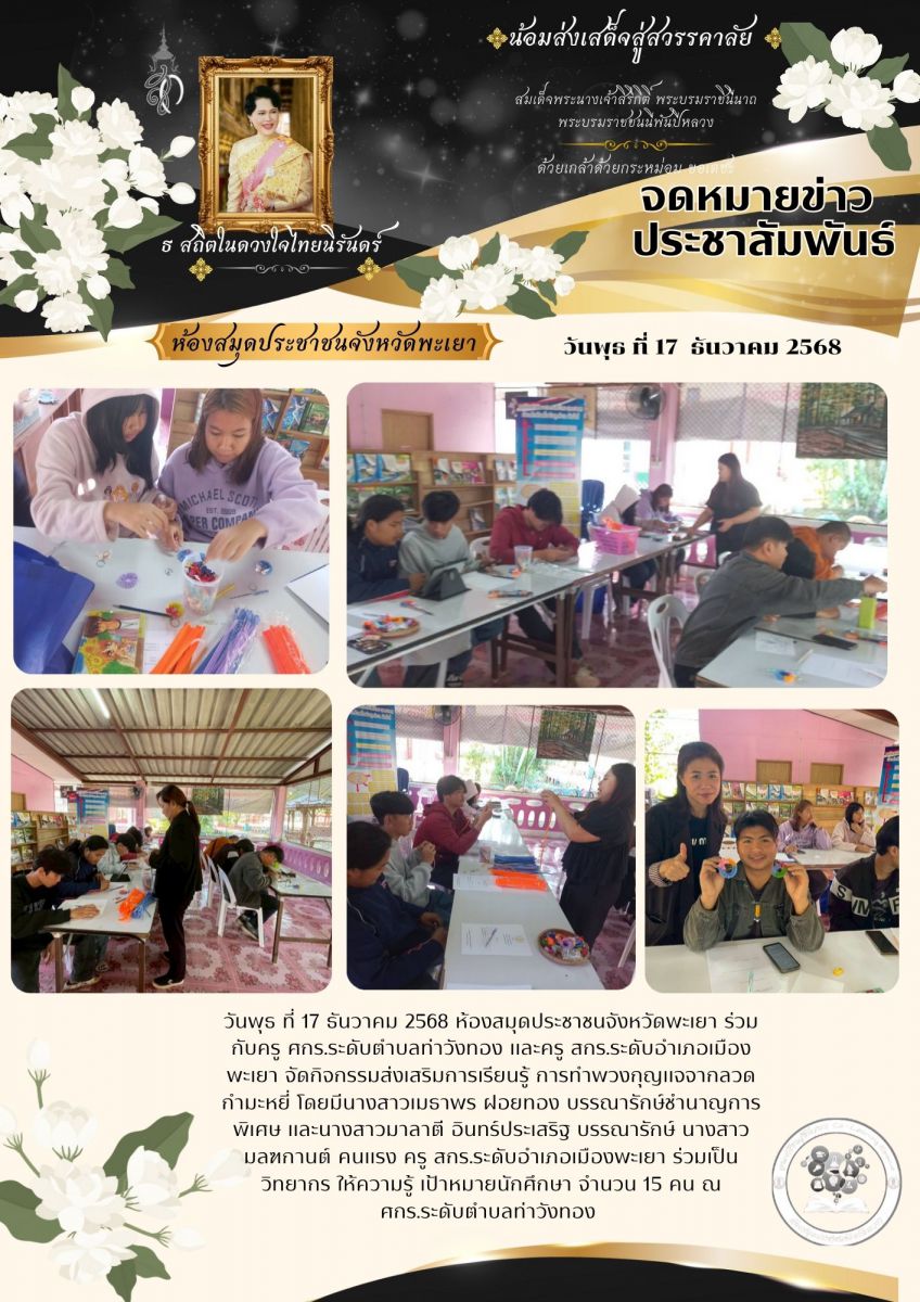 วันพุธ ที่ 17 ธันวาคม 2568 ห้องสมุดประชาชนจังหวัดพะเยา ร่วมกับครู ศกร.ระดับตำบลท่าวังทอง และครู สกร.ระดับอำเภอเมืองพะเยา จัดกิจกรรมส่งเสริมการเรียนรู้...