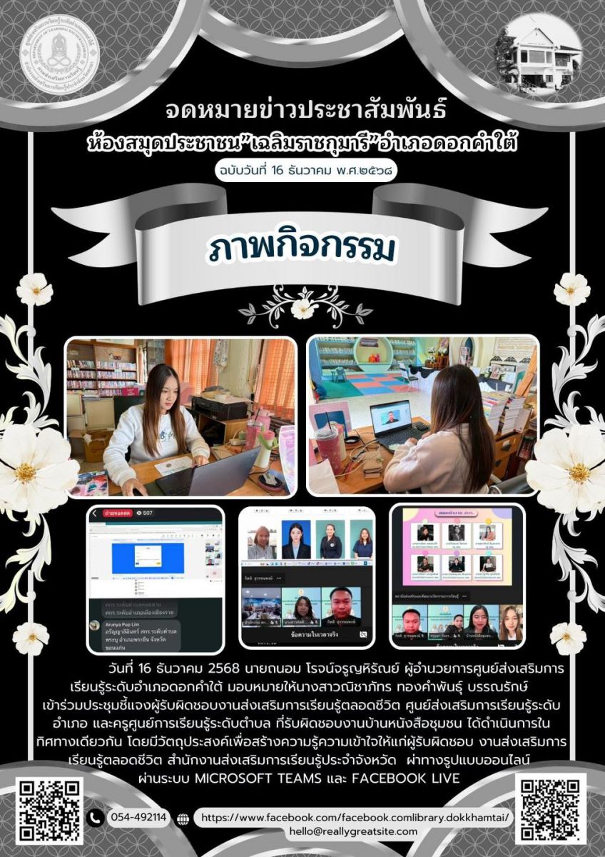 กิจกรรม : ห้องสมุดประชาชน "เฉลิมราชกุมารี" อำเภอดอกคำใต้