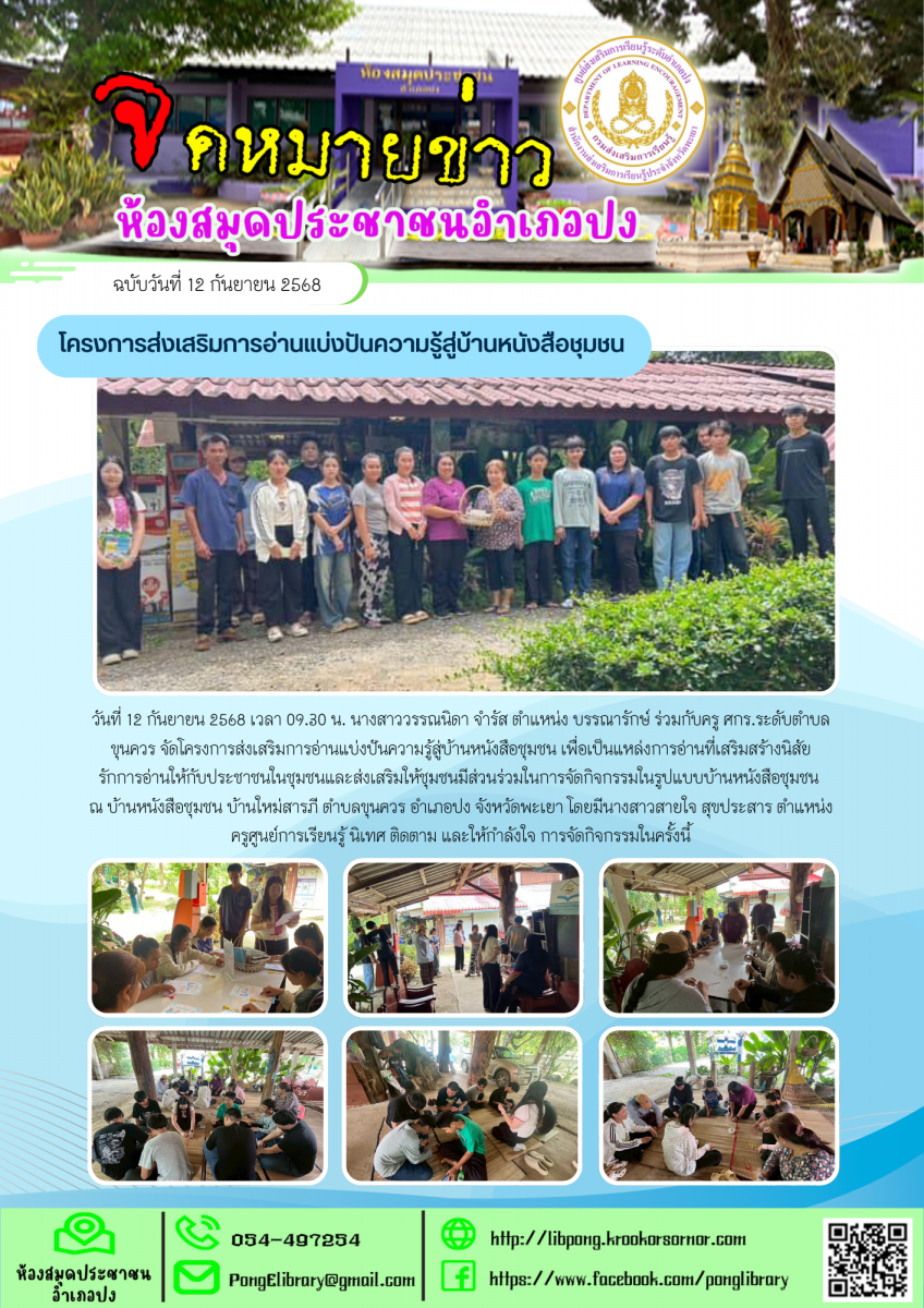 จัดโครงการส่งเสริมการอ่านแบ่งปันความรู้สู่บ้านหนังสือชุมชน ณ บ้านหนังสือชุมชน บ้านปัว ตำบลงิม ...