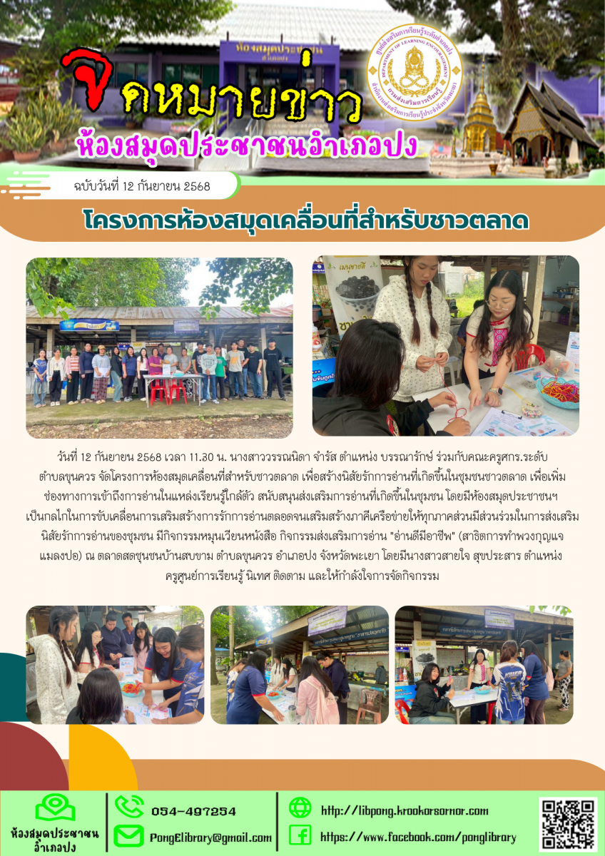 จัดโครงการห้องสมุดเคลื่อนที่สำหรับชาวตลาด ณ ตลาดสดชุนชนบ้านสบขาม ตำบลขุนควร ...