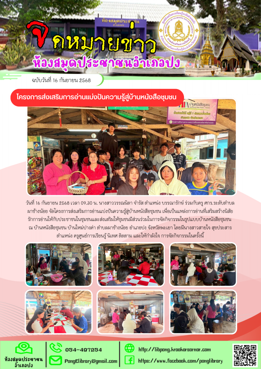 กิจกรรม : ห้องสมุดประชาชนอำเภอปง