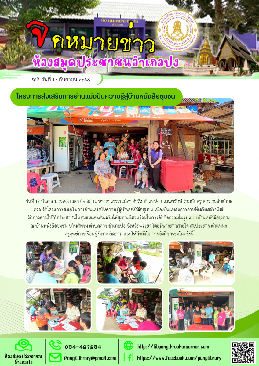 จัดโครงการส่งเสริมการอ่านแบ่งปันความรู้สู่บ้านหนังสือชุมชน ณ บ้านหนังสือชุมชน บ้านสีพรม ตำบลควร ...