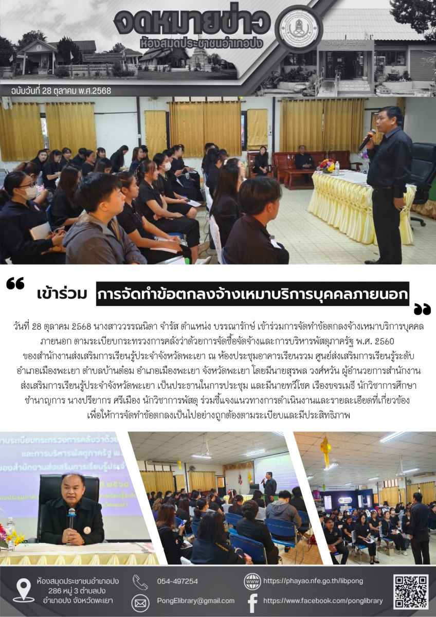 เข้าร่วมการจัดทำข้อตกลงจ้างเหมาบริการบุคคลภายนอก ตามระเบียบกระทรวงการคลังว่าด้วยการจัดซื้อจัดจ้างและการบริหารพัสดุภาครัฐ พ.ศ. 2560 ของสำนักงานส่งเสริม...