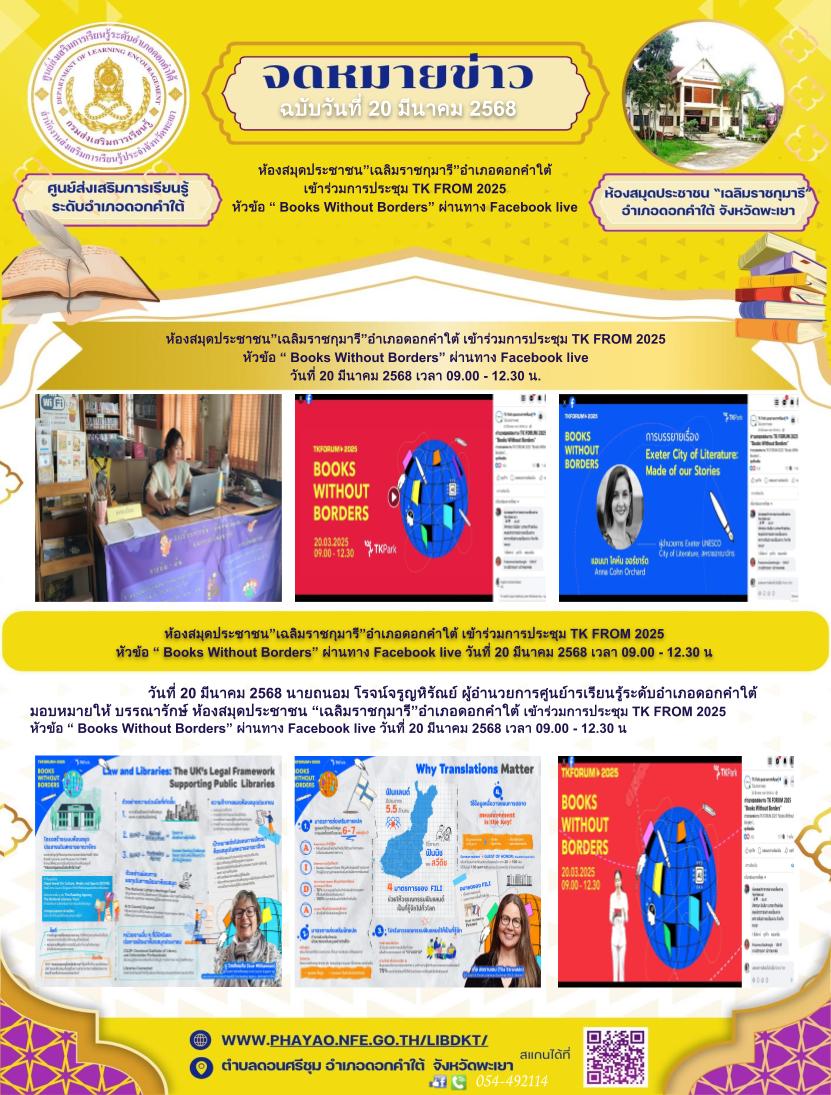 กิจกรรมส่งเสริมการอ่านผ่านสื่อออนไลน์ ภายใต้ โครงการบรรณสัญจร สู่ชุมชน รักการอ่าน การเรียนรู้ตลอด ชีวิต ประจำปีงบประมาณ 2568 ...