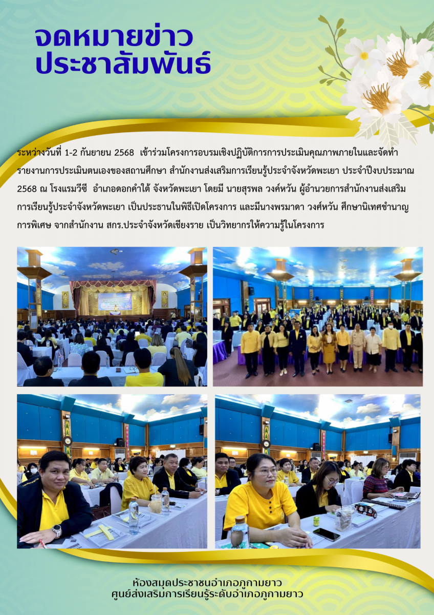 เข้าร่วมโครงการอบรมเชิงปฏิบัติการการประเมินคุณภาพภายในและจัดทำรายงานการประเมินตนเองของสถานศึกษา...