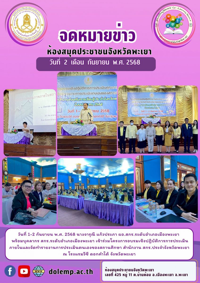 วันที่ 1-2 กันยายน พ.ศ. 2568 นางจารุณี แก้วประภา ผอ.สกร.ระดับอำเภอเมืองพะเยา พร้อมบุคลากร สกร.ระดับอำเภอเมืองพะเยา เข้าร่วมโครงการอบรมเชิงปฎิบัติการก...