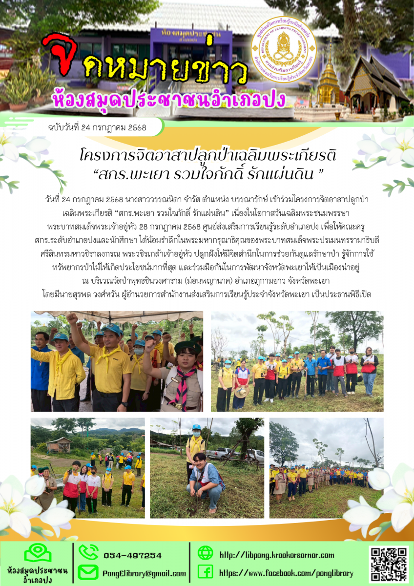 ข้าร่วมโครงการจิตอาสาปลูกป่าเฉลิมพระเกียรติ “สกร.พะเยา รวมใจภักดิ์ รักแผ่นดิน” เนื่องในโอกาสวันเฉลิมพระชนมพรรษา พระบาทสมเด็จพระเจ้าอยู่หัว 28 กรกฎาคม ...