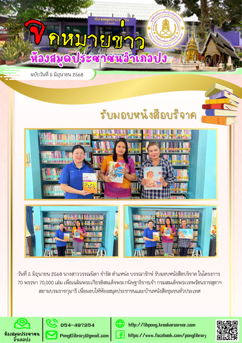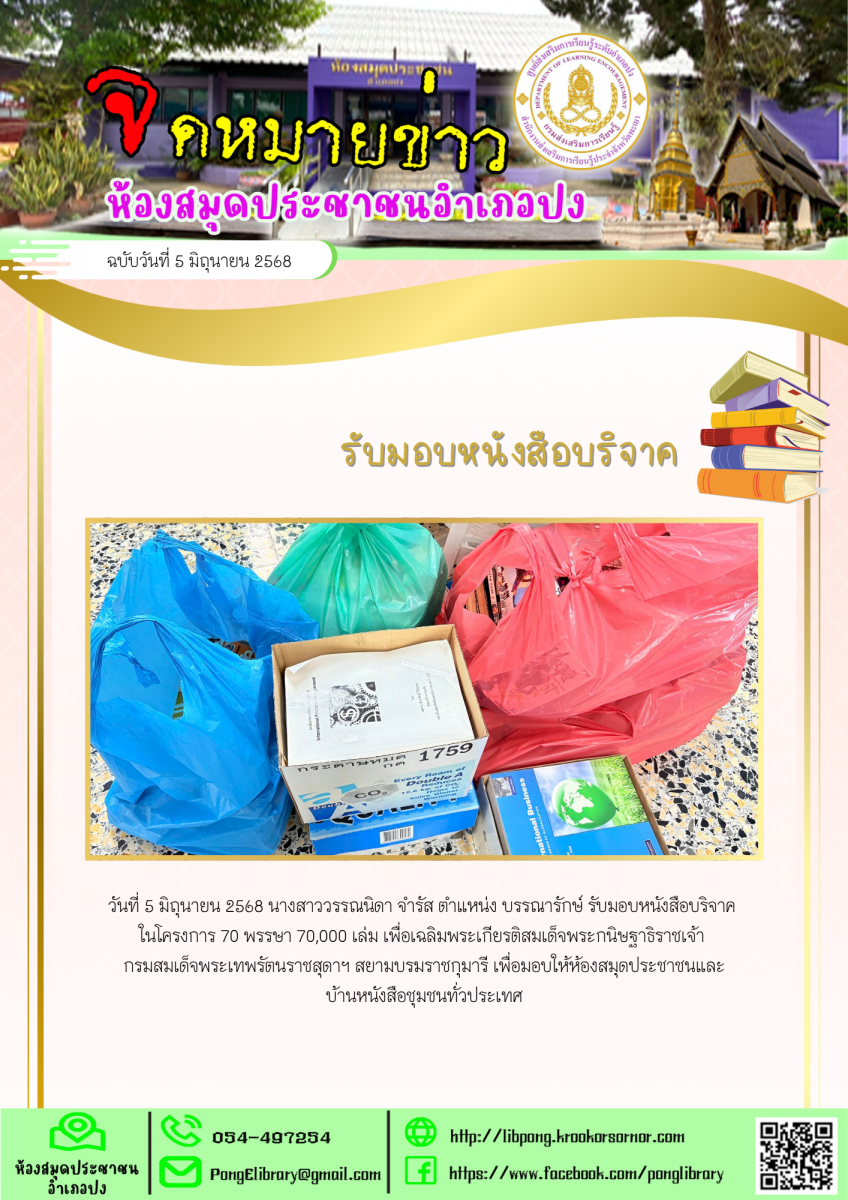 รับมอบหนังสือบริจาค จาก ร้านแคทรียา ภีมวัจน์ ศรีโพธิ์ ภายใต้โครงการ 70 พรรษา 70,000 เล่ม เพื่อเฉลิมพระเกียรติสมเด็จพระกนิษฐาธิราชเจ้า กรมสมเด็จพระเทพร...