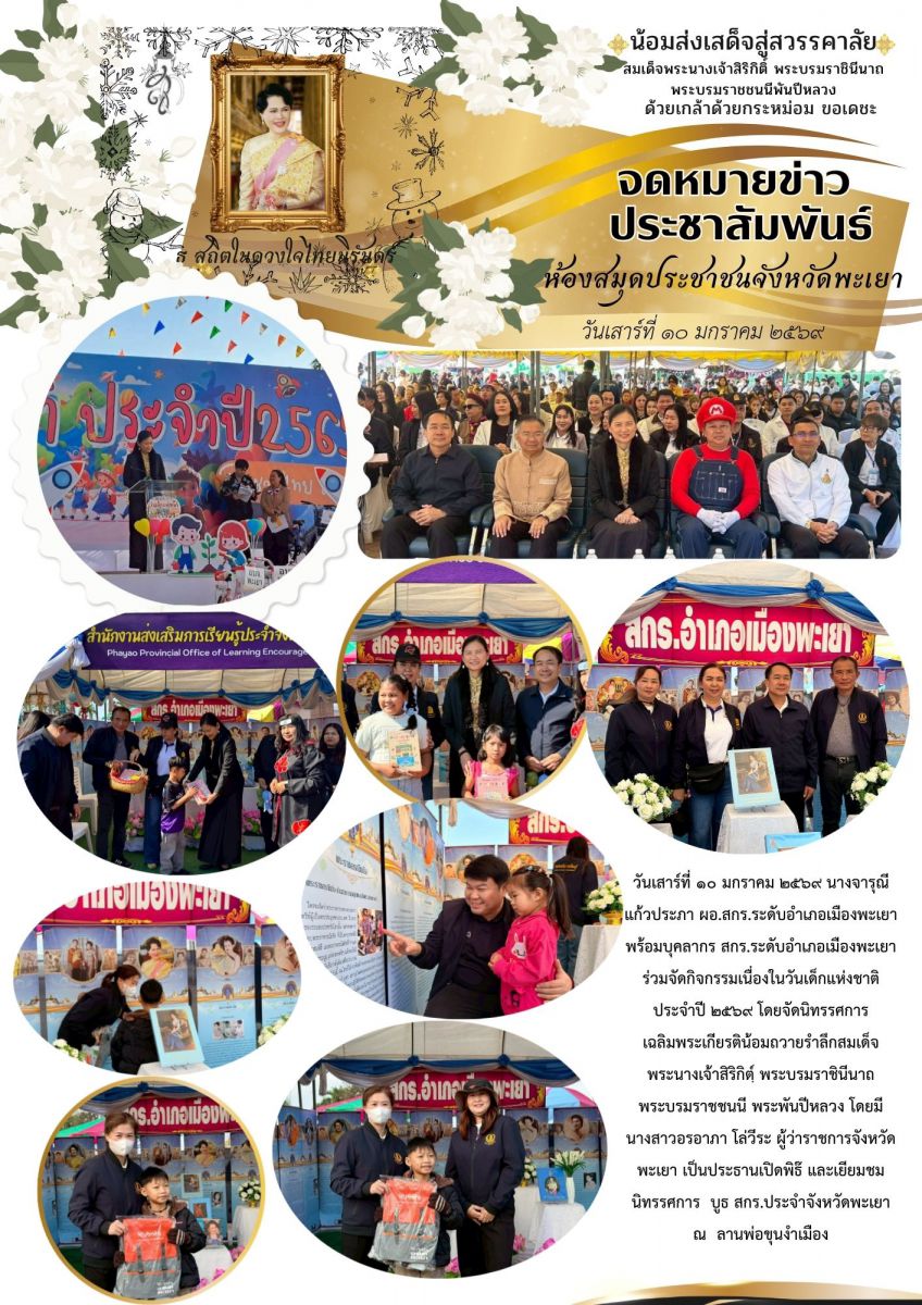 วันเสาร์ที่ 10 มกราคม 2569 นางจารุณี แก้วประภา ผอ.สกร.ระดับอำเภอเมืองพะเยา พร้อมบุคลากร สกร.ระดับอำเภอเมืองพะเยา ร่วมจัดกิจกรรมเนื่องในวันเด็กแห่งชาต...