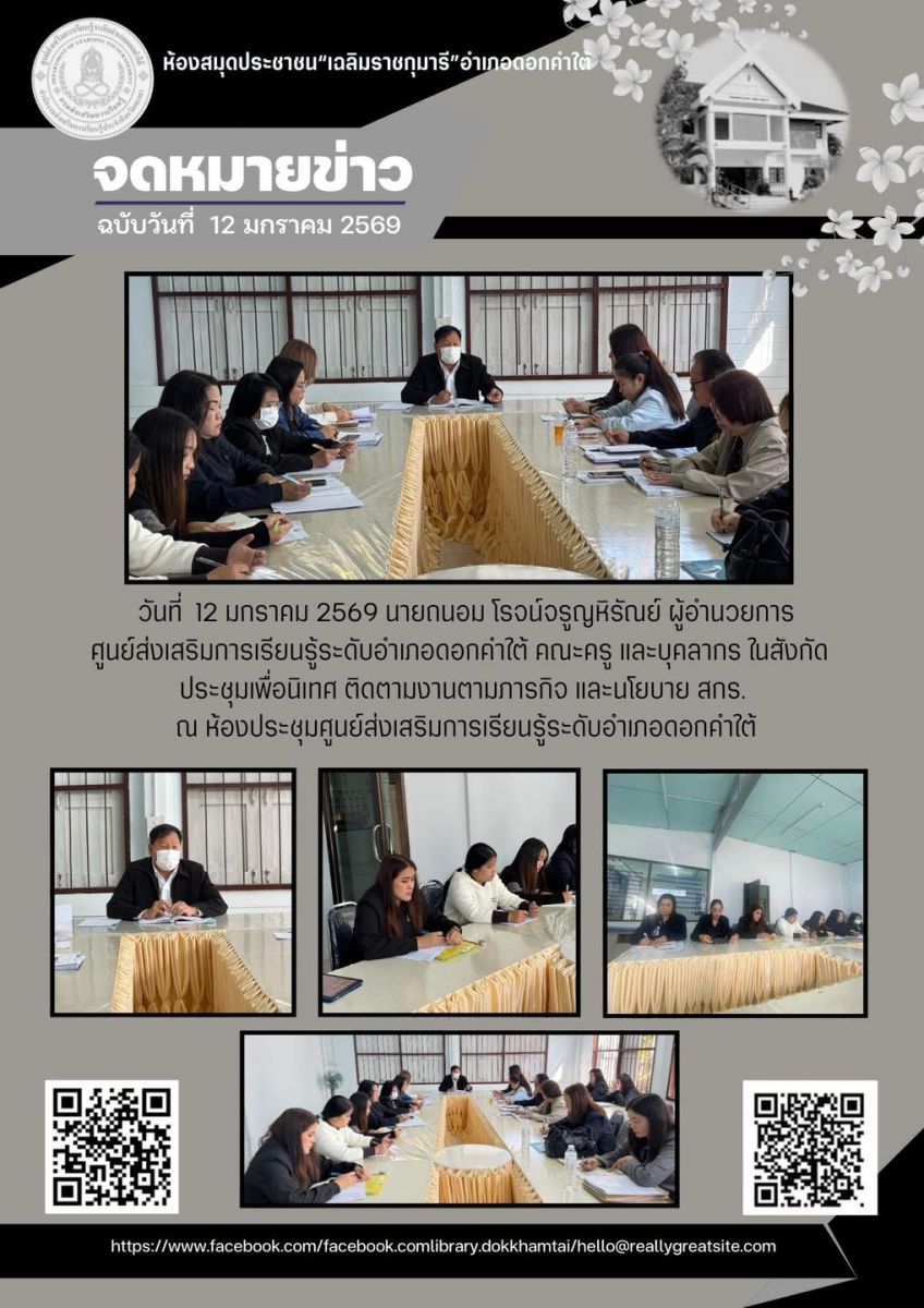 ประชุมเพื่อนิเทศ ติดตามงานตามภารกิจ และนโยบาย สกร. ณ ห้องประชุมศูนย์ส่งเสริมการเรียนรู้ระดับอำเภอดอกคำใต้...
