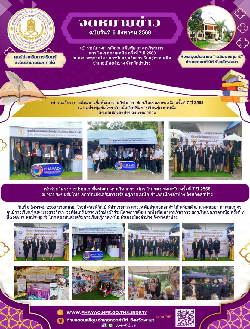 060868 เข้าร่วมโครงการสัมมนาเพื่อพัฒนางานวิชาการ สกร.ในเขตภาคเหนือ ครั้งที่ 7 ปี 2568 ณ หอประชุมร่มไทร สถาบันส่งเสริมการเรียนรู้ภาคเหนือ อำเภอเมืองลำป...