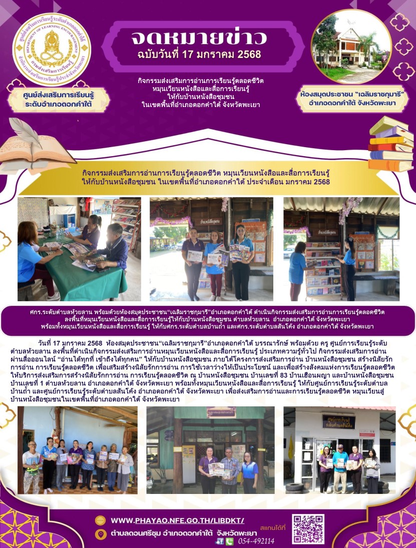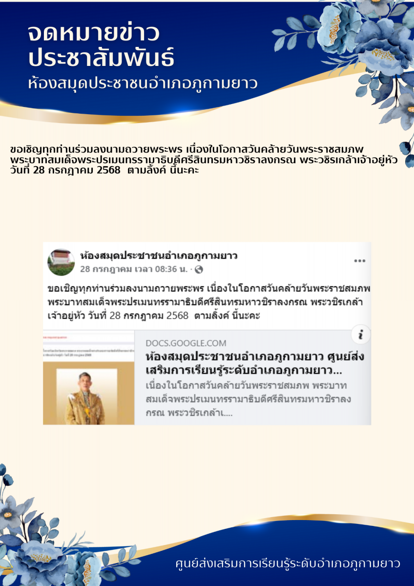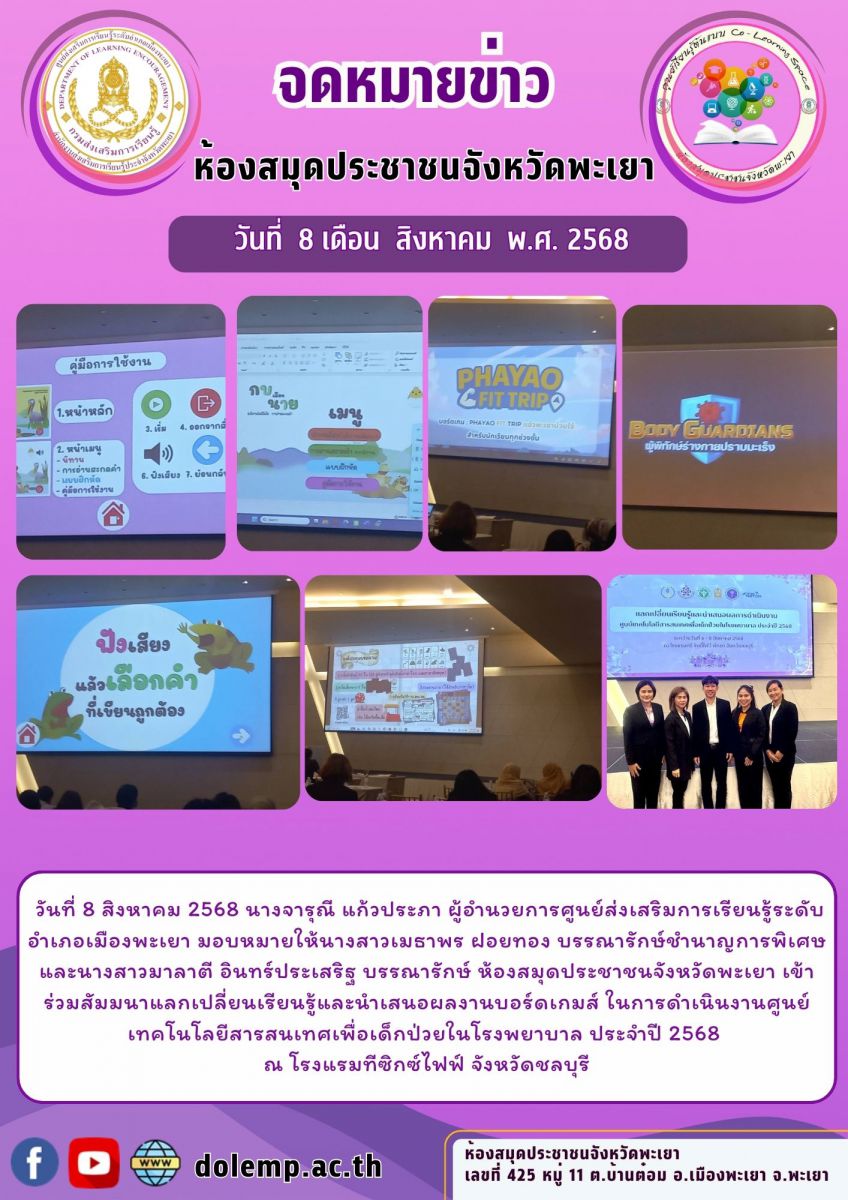 วันที่ 8 สิงหาคม 2568 นางจารุณี แก้วประภา ผู้อำนวยการศูนย์ส่งเสริมการเรียนรู้ระดับอำเภอเมืองพะเยา มอบหมายให้นางสาวเมธาพร ฝอยทอง บรรณารักษ์ชำนาญการพิเ...