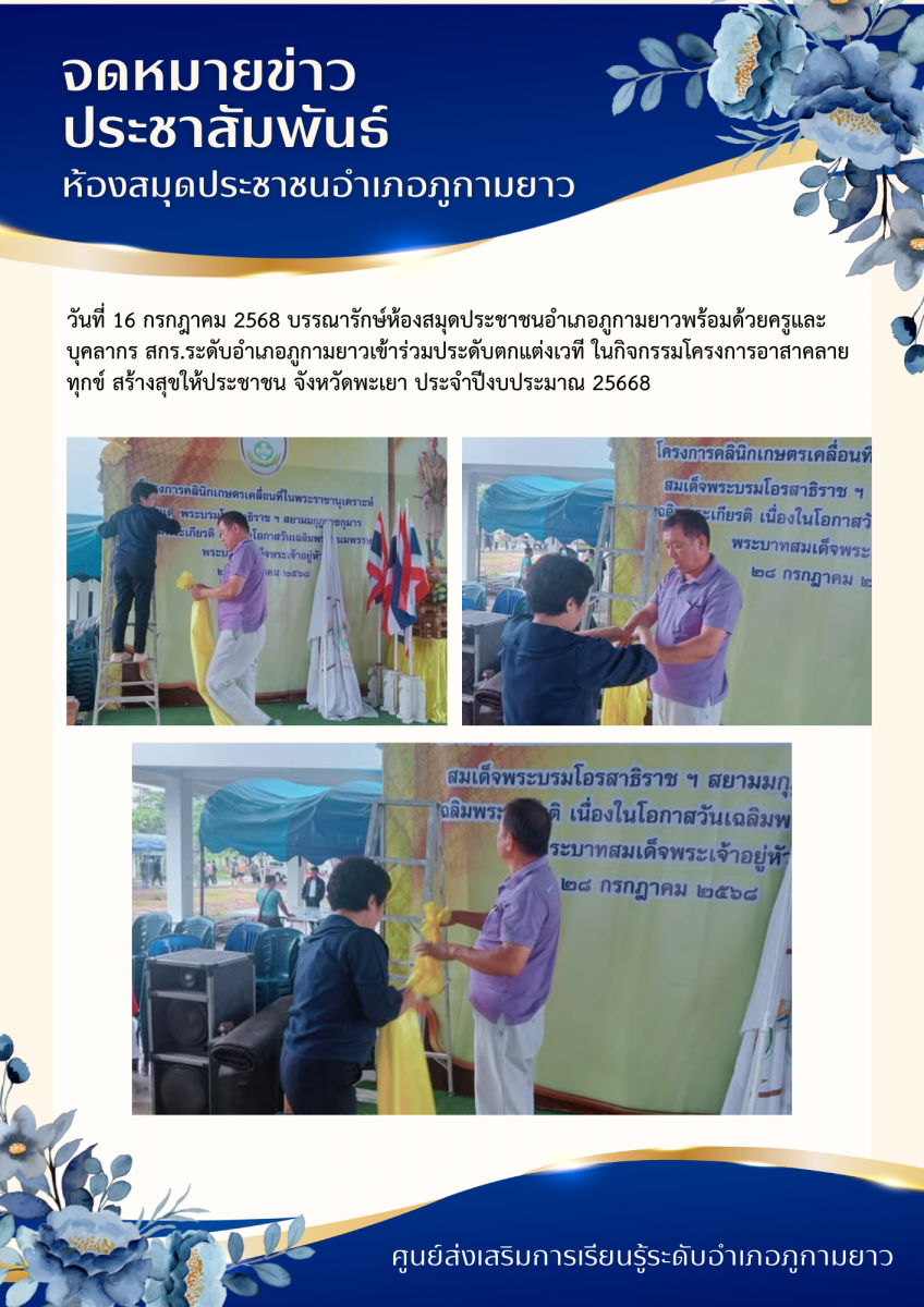 ประดับตกแต่งเวที ในกิจกรรมโครงการอาสาคลายทุกข์ สร้างสุขให้ประชาชน จังหวัดพะเยา ประจำปีงบประมาณ 25668...