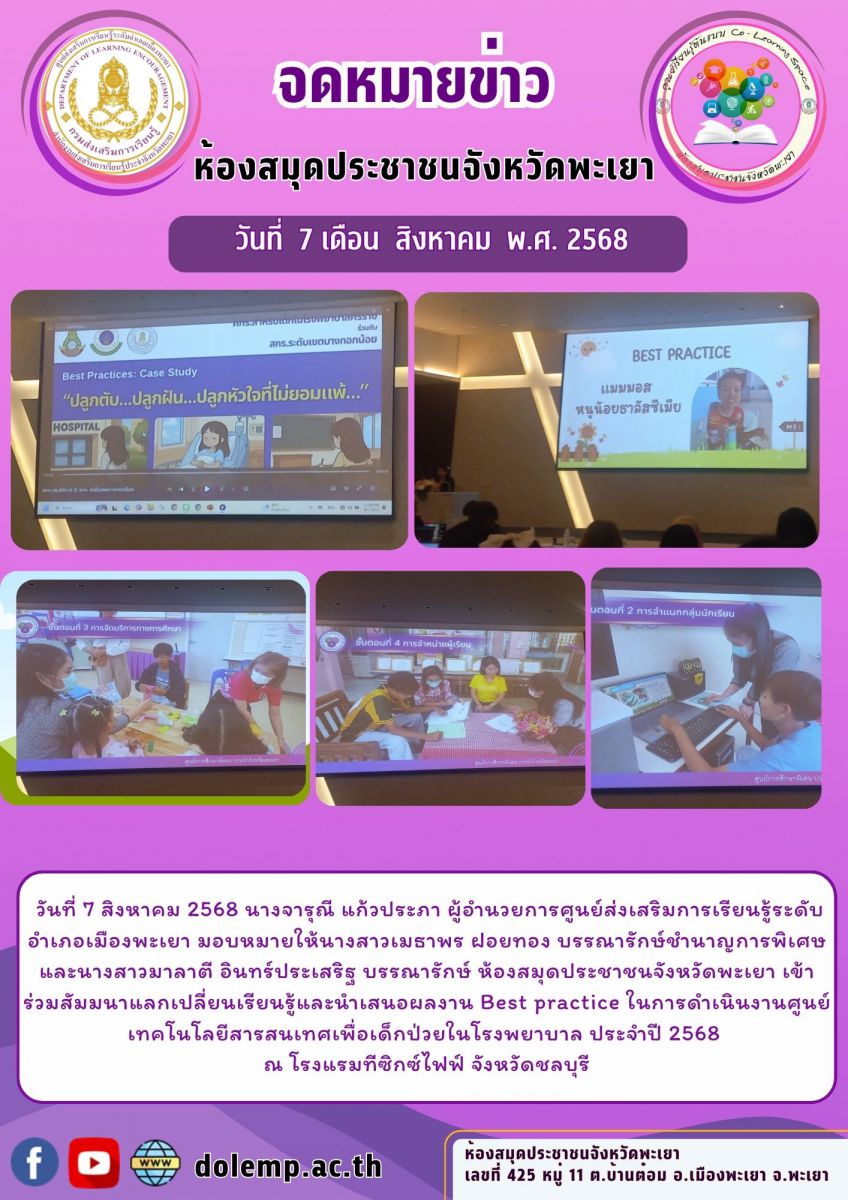 วันที่ 7 สิงหาคม 2568 นางจารุณี แก้วประภา ผู้อำนวยการศูนย์ส่งเสริมการเรียนรู้ระดับอำเภอเมืองพะเยา มอบหมายให้นางสาวเมธาพร ฝอยทอง บรรณารักษ์ชำนาญการพิเ...