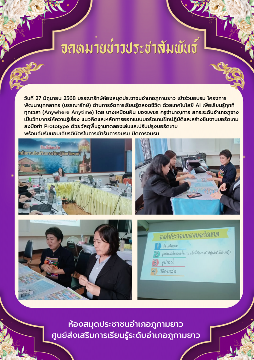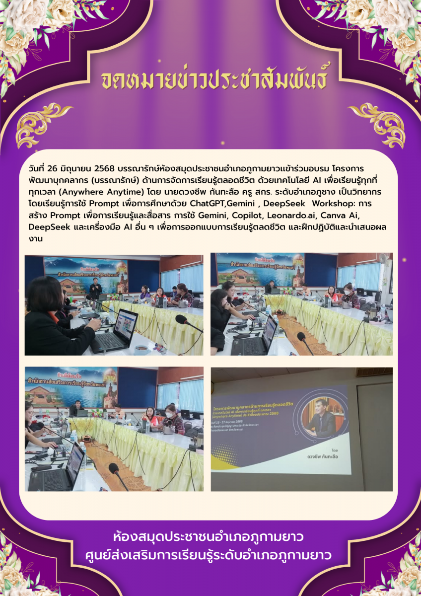 โครงการพัฒนาบุกคลากร (บรรณารักษ์) ด้านการจัดการเรียนรู้ตลอดชีวิต ด้วยเทคโนโลยี AI เพื่อเรียนรู้ทุกที่ ทุกเวลา (Anywhere Anytime) ...