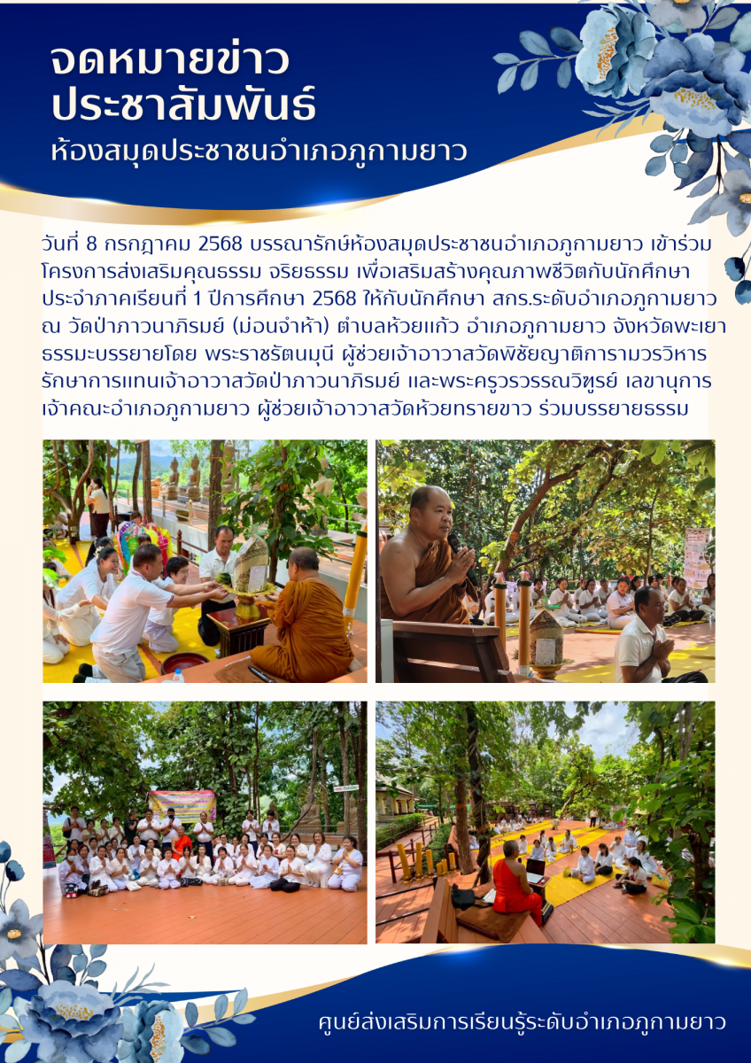 โครงการส่งเสริมคุณธรรม จริยธรรม เพื่อเสริมสร้างคุณภาพชีวิตกับนักศึกษา ประจำภาคเรียนที่ 1 ปีการศึกษา 2568 ...