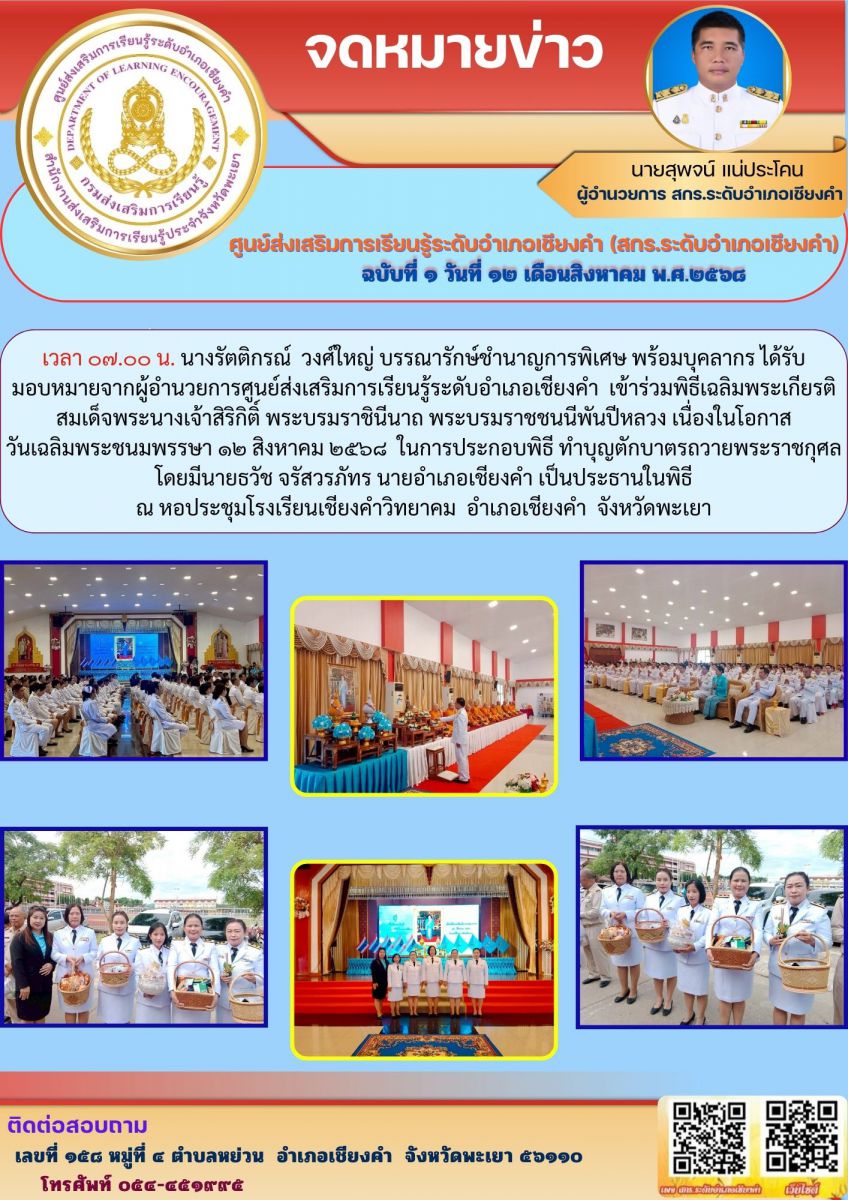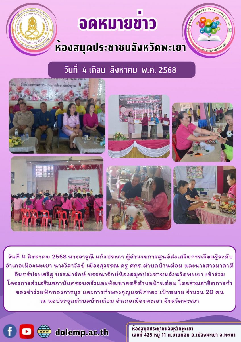วันที่ 4 สิงหาคม 2568 นางจารุณี แก้วประภา ผู้อำนวยการศูนย์ส่งเสริมการเรียนรู้ระดับอำเภอเมืองพะเยา นางวิลาวัลย์ เมืองสุวรรณ ครู ศกร.ตำบลบ้านต๋อม และนา...