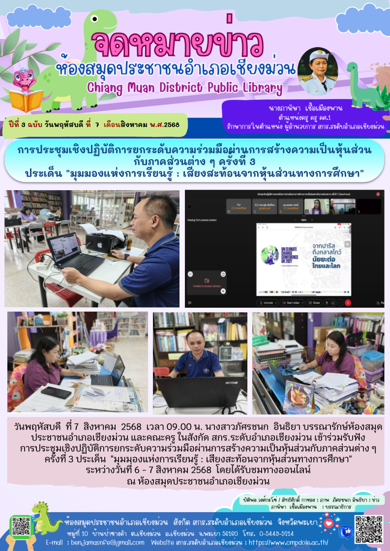 เข้าร่วมรับฟังการประชุมเชิงปฏิบัติการยกระดับความร่วมมือผ่านการสร้างความเป็นหุ้นส่วนกับภาคส่วนต่าง ๆ ครั้งที่ 3 ประเด็น "มุมมองแห่งการเรียนรู้ : เสียง...