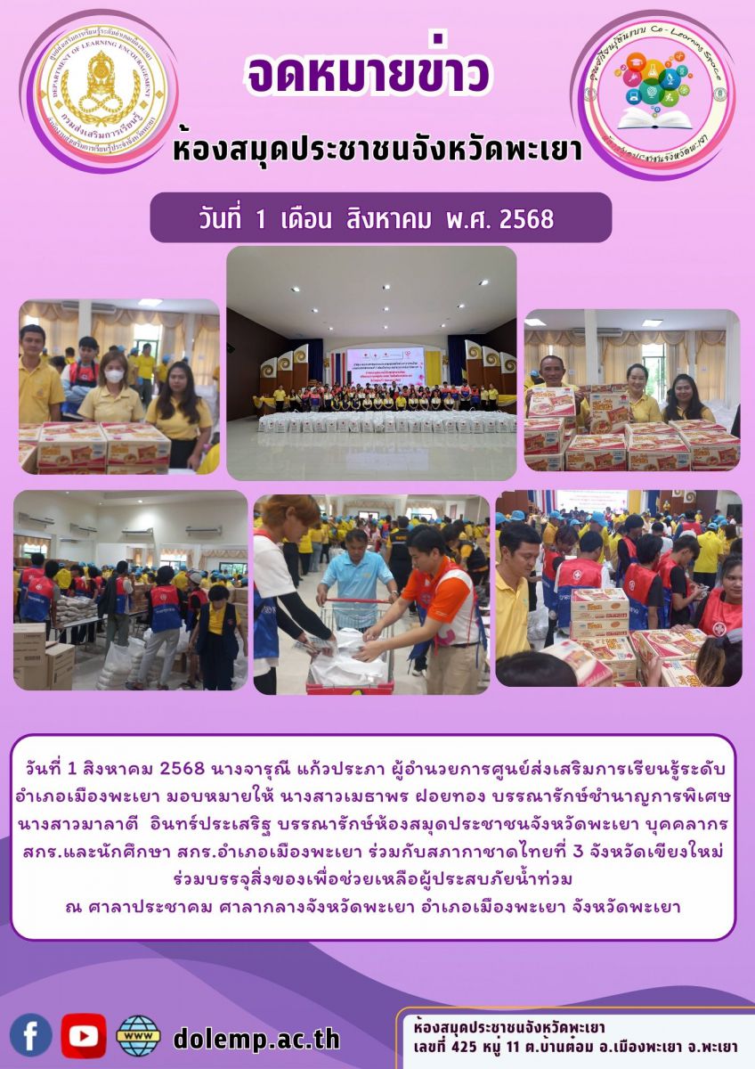 วันที่ 1 สิงหาคม 2568 นางจารุณี แก้วประภา ผู้อำนวยการศูนย์ส่งเสริมการเรียนรู้ระดับอำเภอเมืองพะเยา มอบหมายให้ นางสาวเมธาพร ฝอยทอง บรรณารักษ์ชำนาญการพิ...