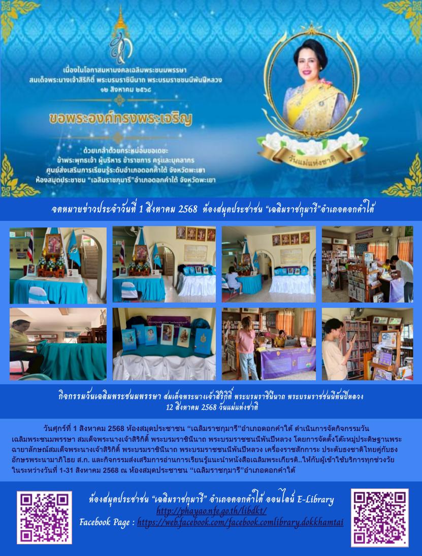 กิจกรรมวันเฉลิมพระชนมพรรษา สมเด็จพระนางเจ้าสิริกิติ์ พระบรมราชินีนาถ พระบรมราชชนนีพันปีหลวง12 สิงหาคม 2568 วันแม่แห่งชาติ...