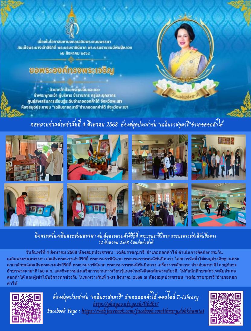 กิจกรรม : ห้องสมุดประชาชน "เฉลิมราชกุมารี" อำเภอดอกคำใต้