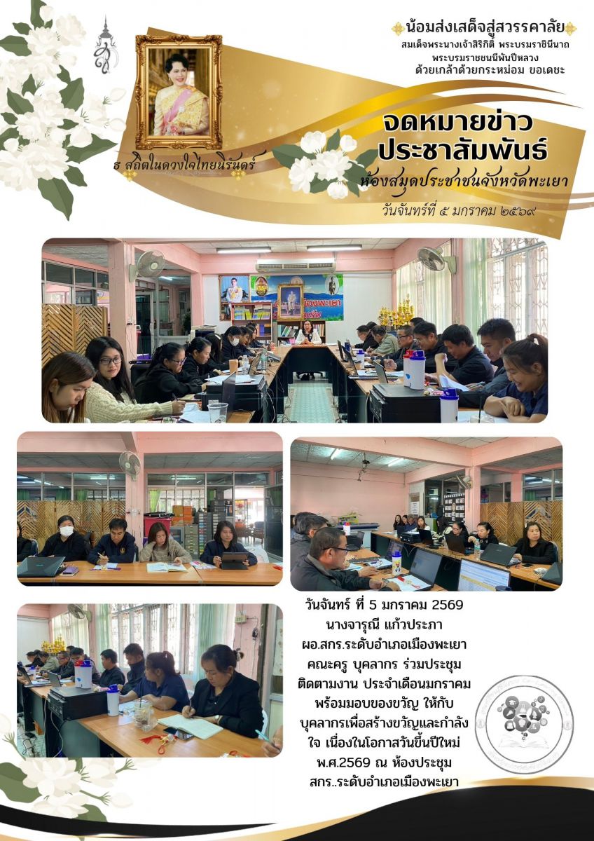 วันจันทร์ ที่ 5 มกราคม 2569 นางจารุณี แก้วประภา ผอ.สกร.ระดับอำเภอเมืองพะเยา คณะครู บุคลากร ร่วมประชุมติดตามงาน ประจำเดือนมกราคม พร้อมมอบของขวัญ ให้กับ...