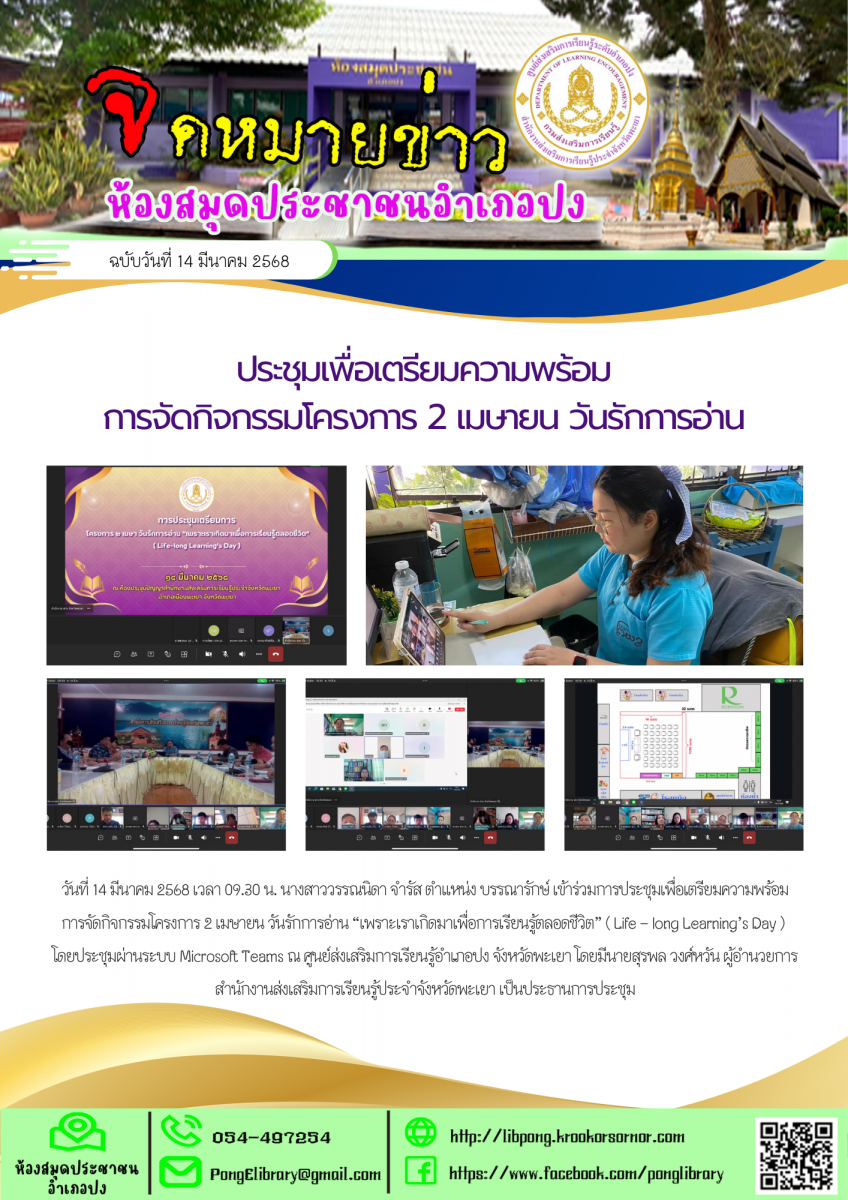 เข้าร่วมการประชุมเพื่อเตรียมความพร้อมการจัดกิจกรรมโครงการ 2 เมษายน วันรักการอ่าน “เพราะเราเกิดมาเพื่อการเรียนรู้ตลอดชีวิต” ( Life – long Learning’s Da...