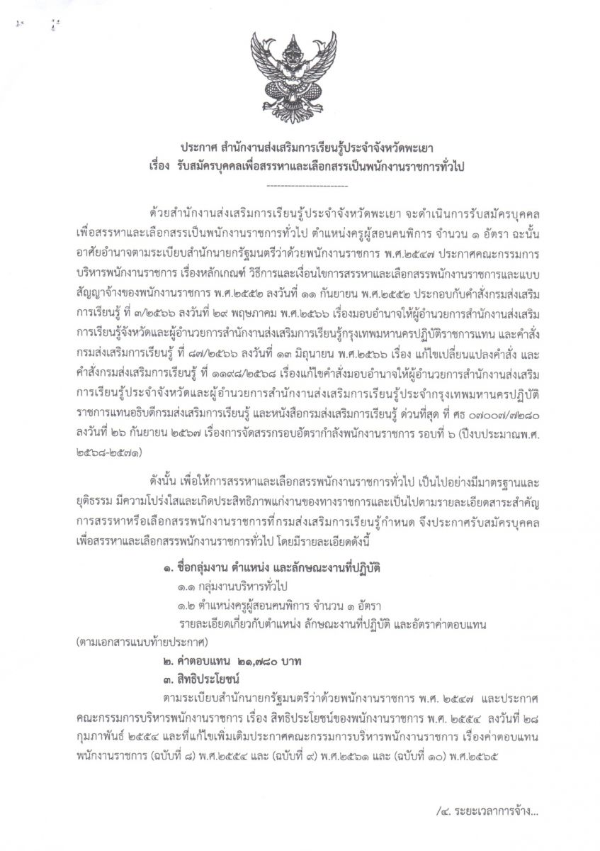 ประกาศ เรื่อง รับสมัครบุคคลเพื่อสรรหาและเลือกสรรเป็นพนักงานราชการทั่วไป ตำแหน่ง ครูผู้สอนคนพิการ...