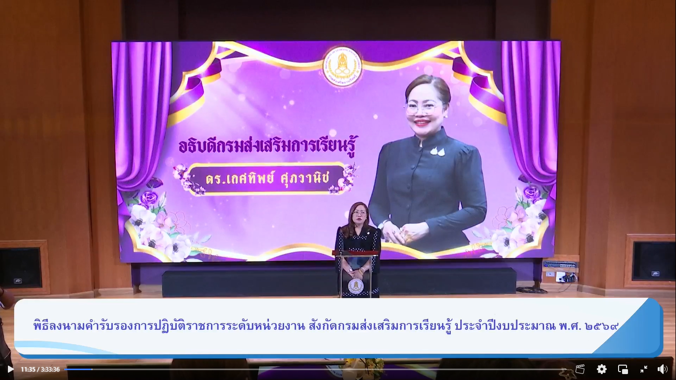 การประชุมชี้แจงแนวทางการดำเนินงานตามคำรับรองการปฏิบัติราชการและพิธีลงนามคำรับรองการปฏิบัติราชการระดับหน่วยงานสังกัดกรมส่งเสริมการเรียนรู้ ประจำปีงบประ...