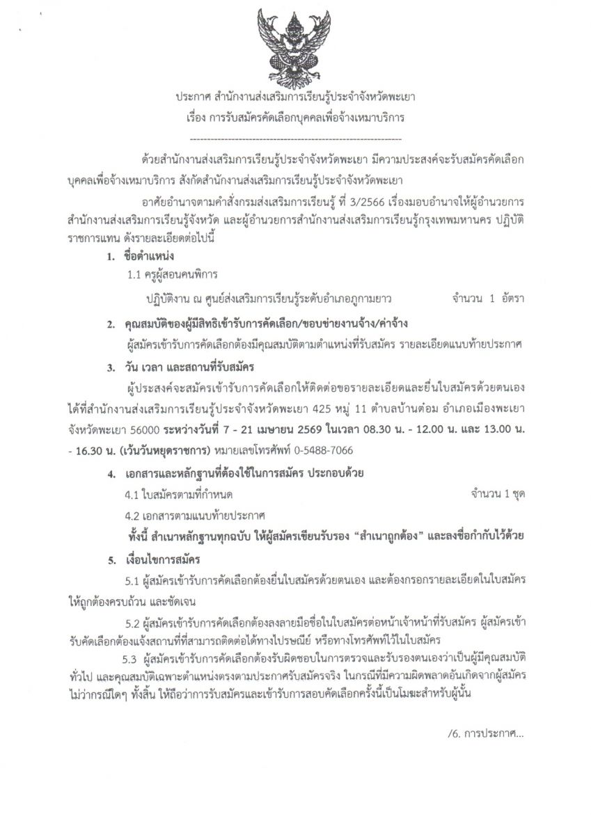 ประกาศ เรื่อง การรับสมัครคัดเลือกบุคคลเพื่อจ้างเหมาบริการ...