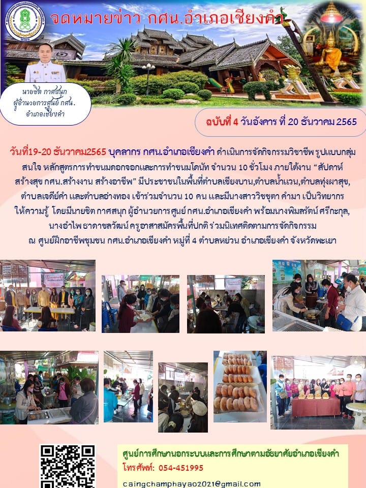วันที่19-20 ธันวาคม2565 ร่วมดำเนินการจัดกิจกรรมวิชาชีพ รูปแบบกลุ่มสนใจ หลักสูตรการทำขนมดอกจอกและการทำขนมโดนัท...