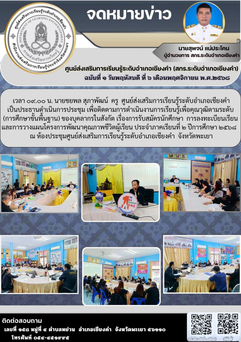 ร่วมการประชุมการติดตามการดำเนินงานจัดเรียนรู้เพื่อคุณวุฒิตามระดับ(การศึกษาขั้นพื้นฐาน) ...