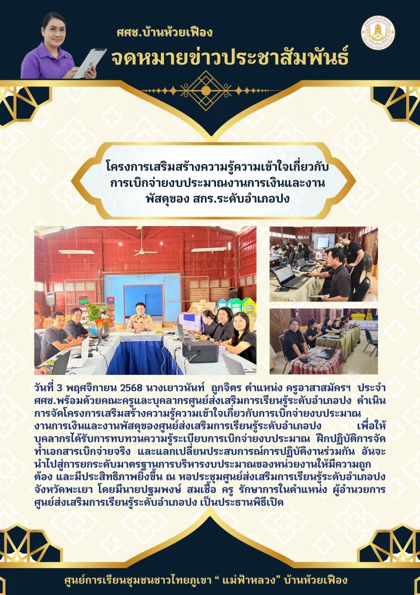 โครงการเสริมสร้างความรู้ความเข้าใจเกี่ยวกับการเบิกจ่ายงบประมาณงานการเงินและงานพัสดุของศูนย์ส่งเสริมการเรียนรู้ระดับอำเภอปง...