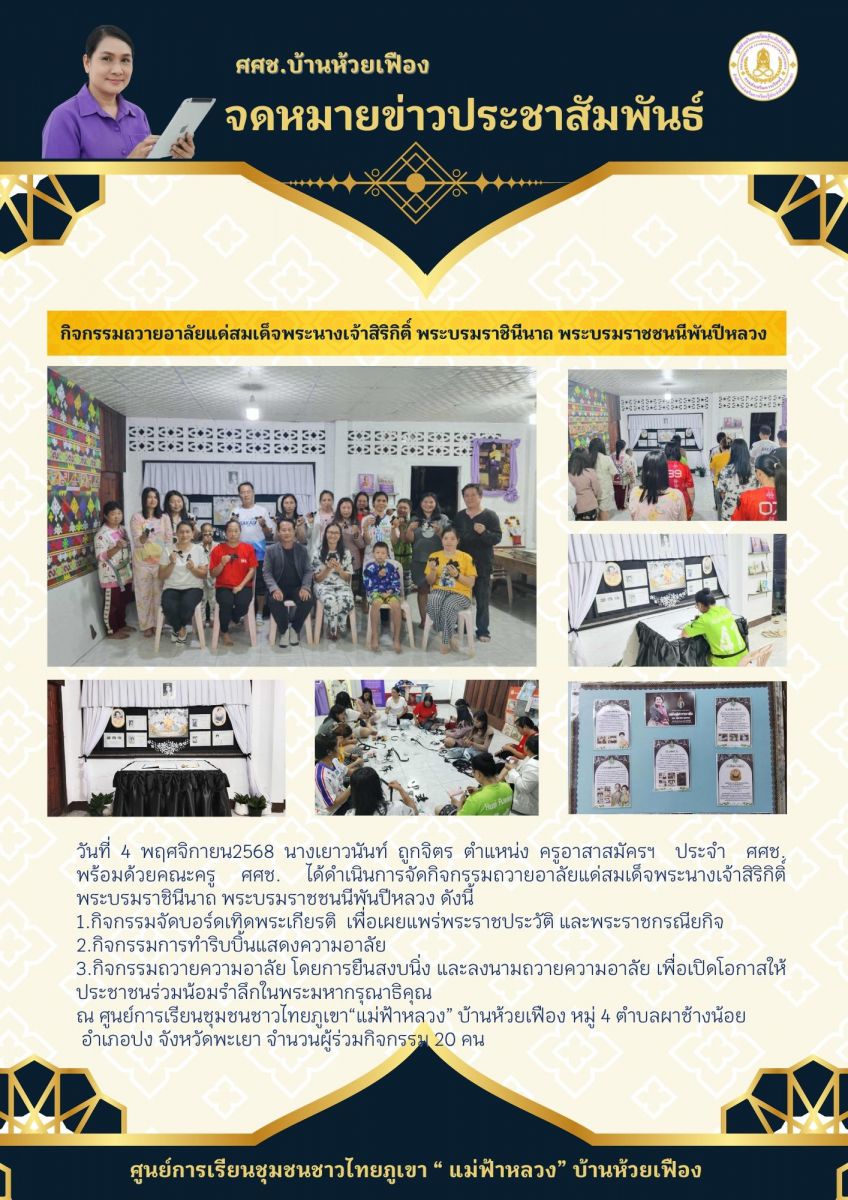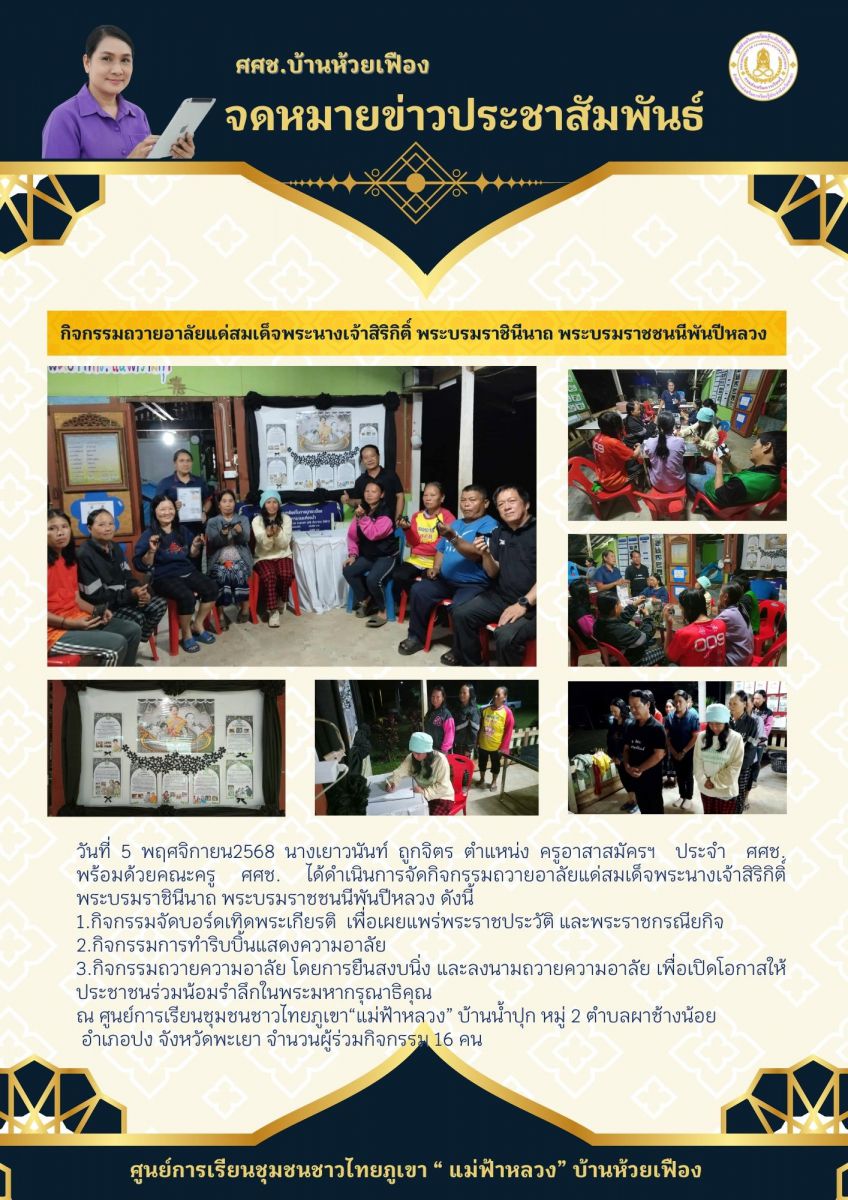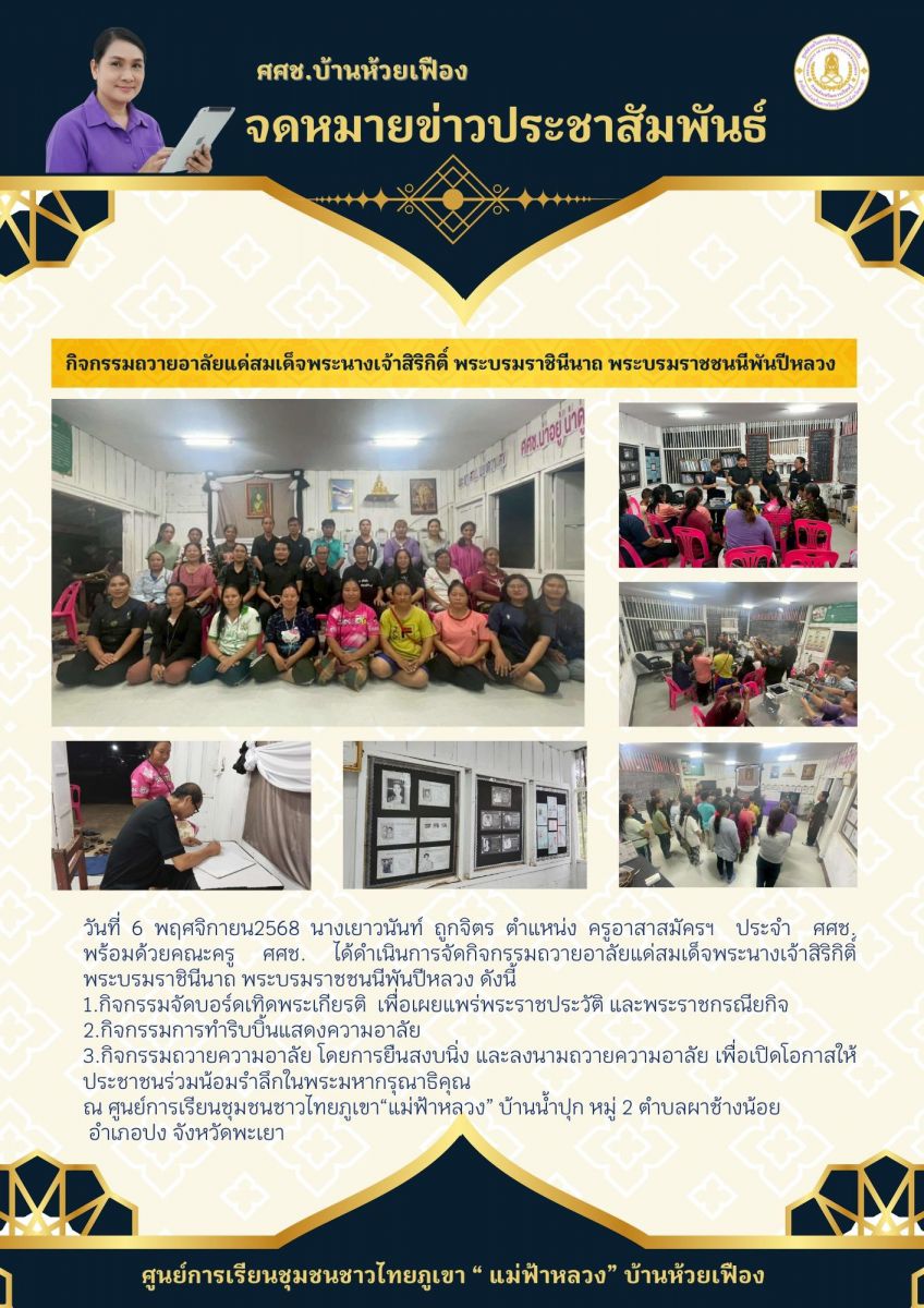 จัดกิจกรรมถวายอาลัยแด่สมเด็จพระนางเจ้าสิริกิติ์ พระบรมราชินีนาถ พระบรมราชชนนีพันปีหลวง...