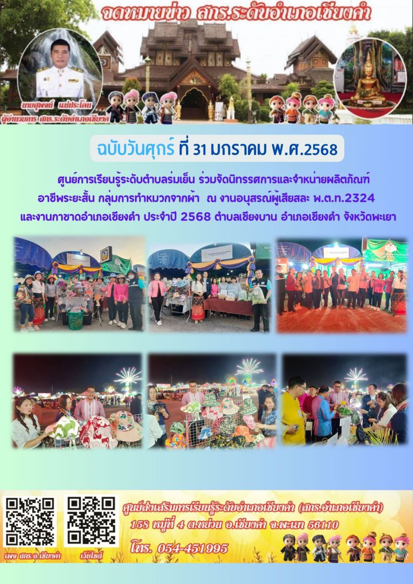 ศูนย์การเรียนรู้ระดับตำบลร่มเย็น ร่วมดำเนินการจัดประกวดธิดาจำแลงอำเภอเชียงคำ ในงานอนุสรณ์ผู้เสียสละ พ.ต.ท.2324 และงานกาชาดอำเภอเชียงคำ ประจำปี 2568 ...