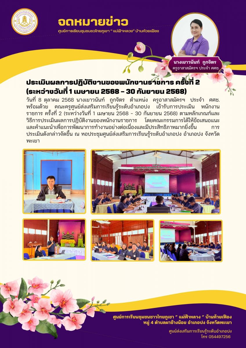 เข้ารับการประเมิน พนักงานราชการ ครั้งที่ 2 (ระหว่างวันที่ 1 เมษายน 2568 – 30 กันยายน 2568) ...