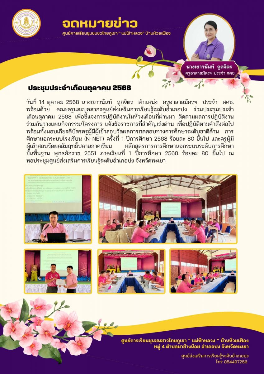 เข้าร่วมประชุมเชิงปฏิบัติการเพื่อจัดทำแผนปฏิบัติการ ประจำปีงบประมาณ พ.ศ. 2569 โครงการถ่ายทอดองค์ความรู้ตามแบบโครงการหลวงเพื่อพัฒฯาศักยภาพชุมชนชบพื้นที...