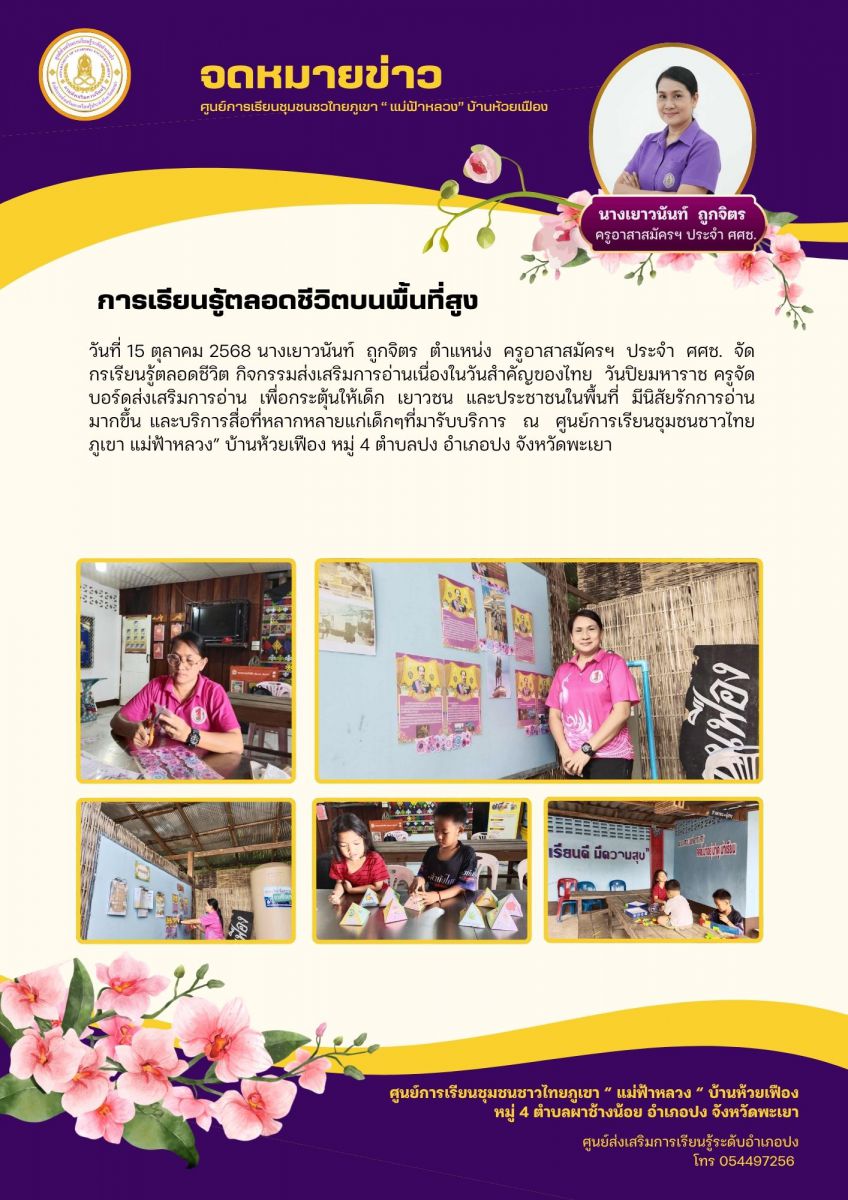 จัดการเรียนรู้ตลอดชีวิต กิจกรรมส่งเสริมการอ่านเนื่องในวันสำคัญของไทย วันปิยมหาราช...