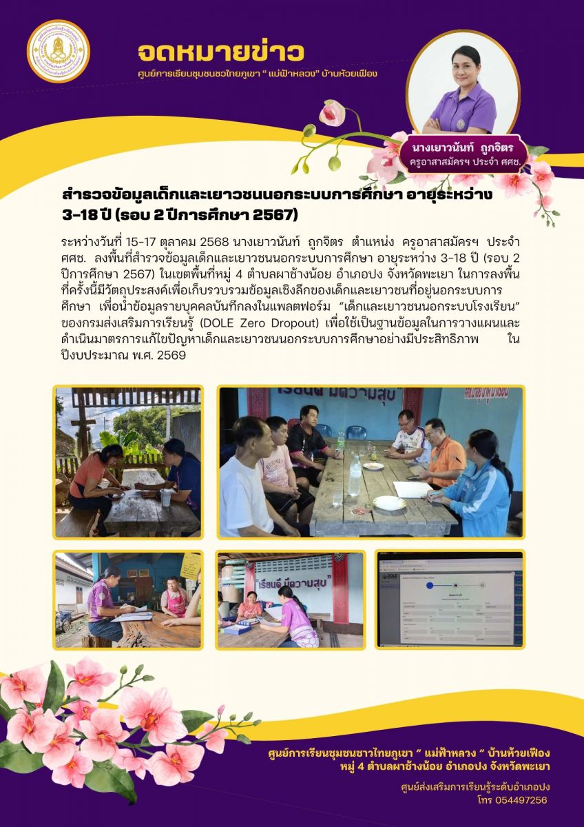 สำรวจข้อมูลเด็กและเยาวชนนอกระบบการศึกษา อายุระหว่าง 3–18 ปี (รอบ 2 ปีการศึกษา 2567) ...