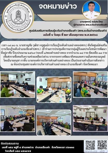 ร่วมการประชุมพิจารณากลุ่มผู้รับผลประโยชน์ในด้านการพัฒนาที่อยู่อาศัย ปีงบประมาณ ๒๕๖๙ (รอบที่ ๑)ของตำบลอ่างทอง...