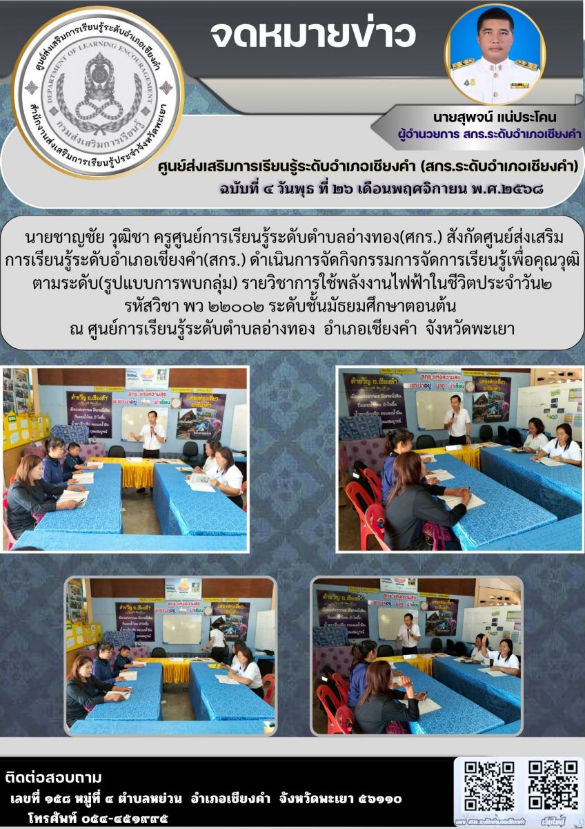 ฝากข่าวประชาสัมพันธ์จากสำนักงานส่งเสริมการเรียนรู้ประจำจังหวัดพะเยา...